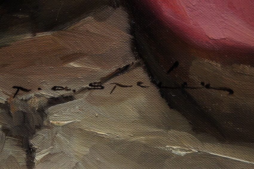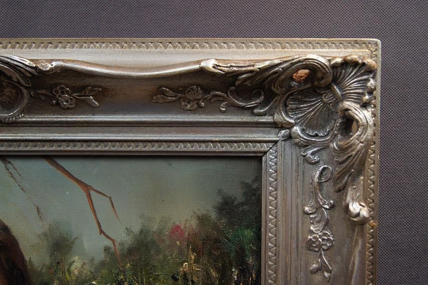 Obraz malowany w technice pędzla, struktura nałożonej farby wyczuwalna pod palcami. Portret sygnowany odręcznie przez artystę w prawym dolnym rogu: P. A. Speier. Płótno oprawione jest w przepiękną, przestrzenną, bogatą ramę w kolorze ciemnego srebra ze złotą poświatą. Dzieło polecamy koneserom dekoracyjnego i cennego malarstwa, jest niezwykle dekoracyjny.