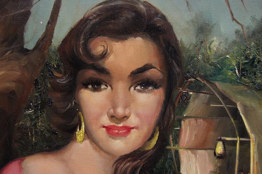 To kolejne dzieło portretowe tego artysty w naszej ofercie. Niezwykle dekoracyjne, profesjonalne malarstwo portretowe. Dzieło wykonane w technice farb olejnych, namalowane na płótnie naciągniętym na krosno, przedstawiający portret kobiety na łonie natury. Jest to oryginalny obraz którego autorem tej jest niemiecki malarz Peter Albert Speier.