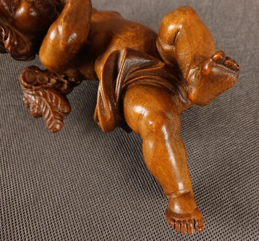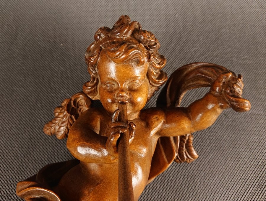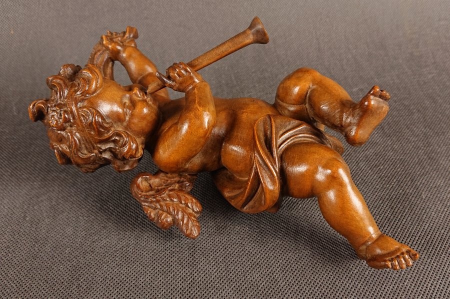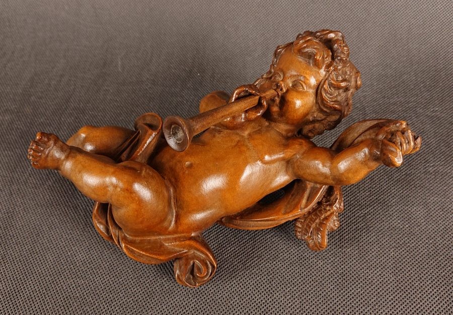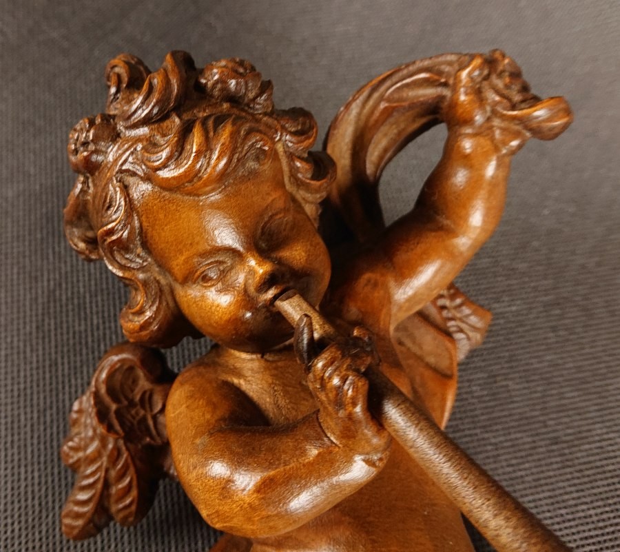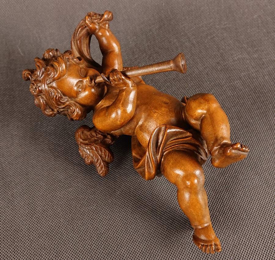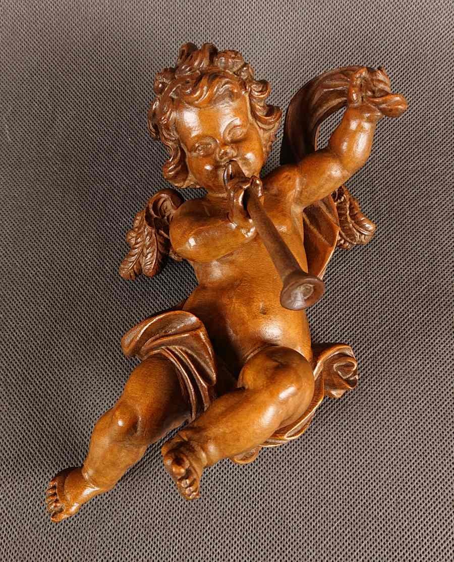 Amor w barokowym stylu z trąbką ⭐ Piękna rzeźba w drewnie