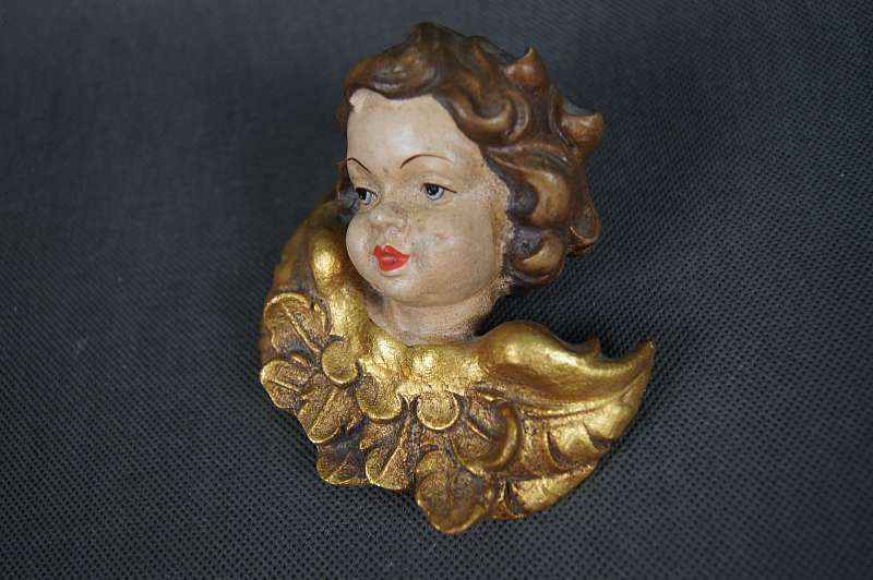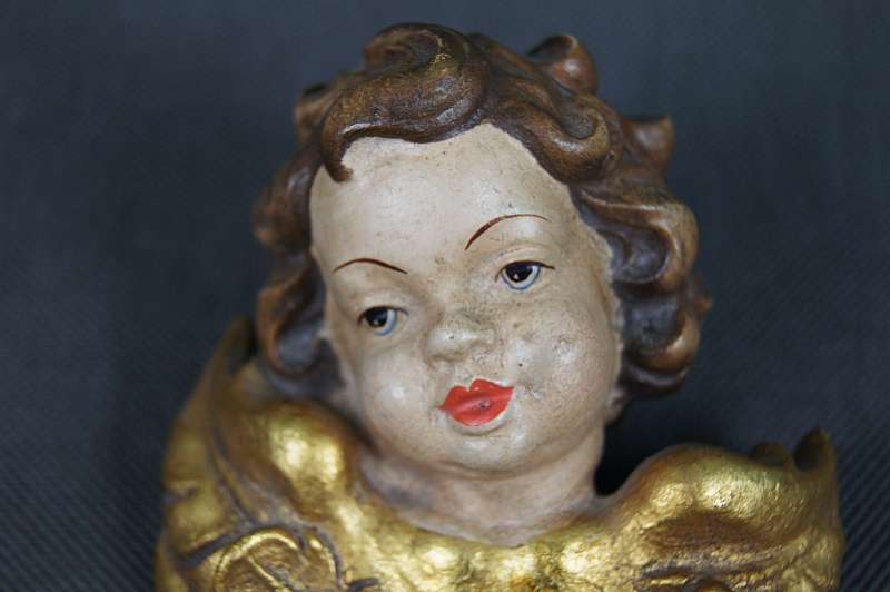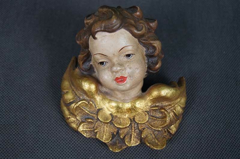 Aniołek amorek drewniana główka polichromia !!!
