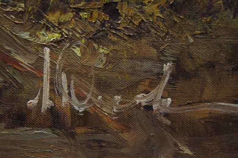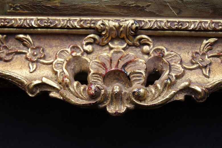 Wymiary: całości z ramą 94 cm x 84 cm, płótno 80 cm x 70 cm.
