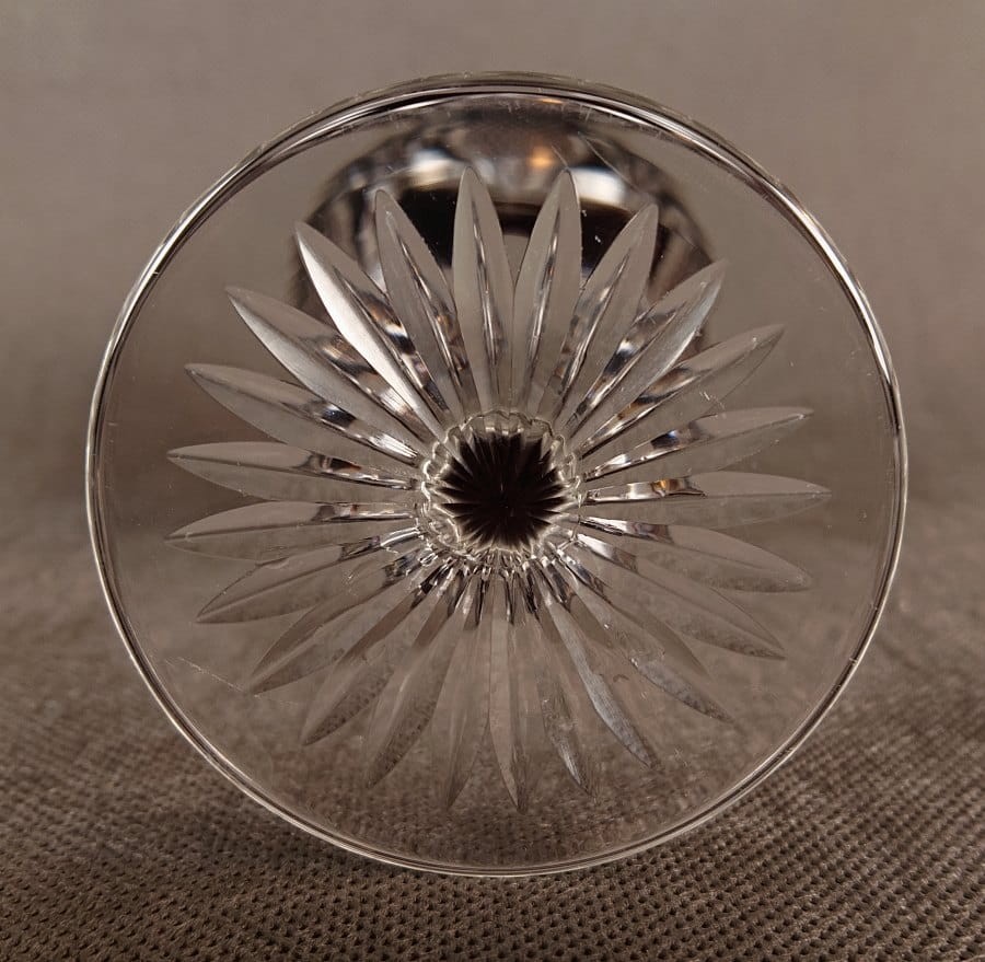 Stopa kielicha jest okrągła i stabilna. Wykonana z bezbarwnego szkła, jest bogato zdobiona szlifowaniami. Na jej powierzchni widoczne są promieniście ułożone, głębokie szlify biegnące od centrum na zewnątrz, co tworzy efekt promienistego słońca i doskonale odbija światło.