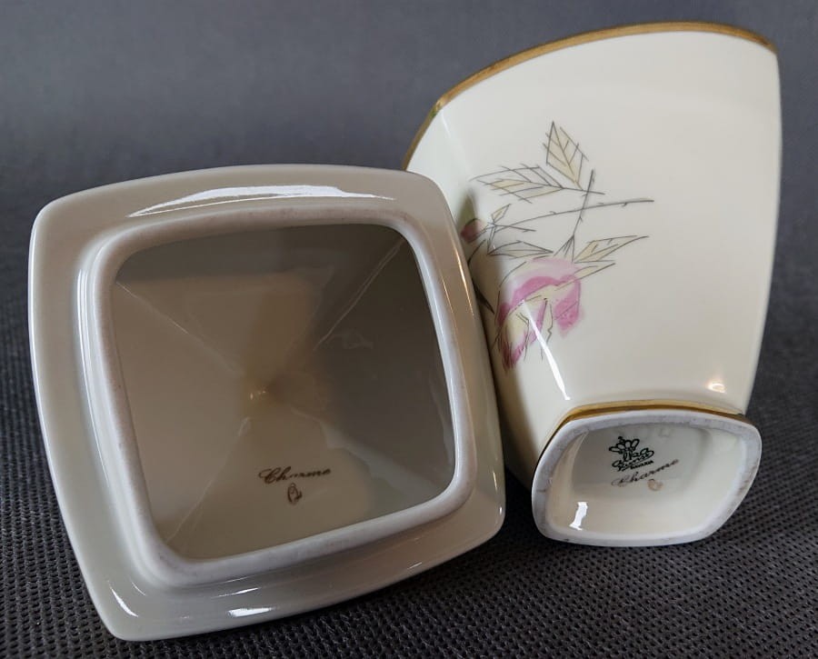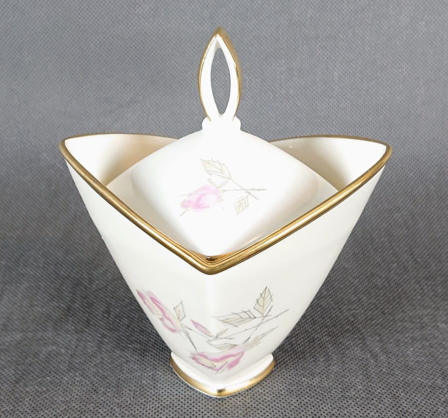 Chociaż forma bombonierki z jej geometrycznymi ściankami i złotymi akcentami nawiązuje do estetyki Art Deco, to subtelny, niemal szkicowy motyw różany jest bardziej charakterystyczny dla późniejszego okresu. Całość łączy w sobie elegancję formy z delikatnym zdobieniem, tworząc wyrafinowany przedmiot dekoracyjny.