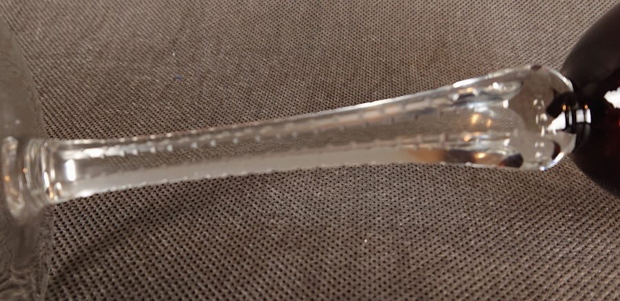 Smukła nóżka kielicha, o subtelnie fasetowanej powierzchni, płynnie przechodzi w szeroką i stabilną stopę zdobioną drobnym radialnym szlifem. Dzięki temu forma kielicha jest nie tylko estetyczna, ale również wygodna i funkcjonalna.