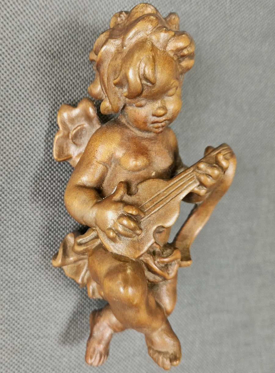Cherubinek grający na gitarze ⭐ Rzeźba w drewnie