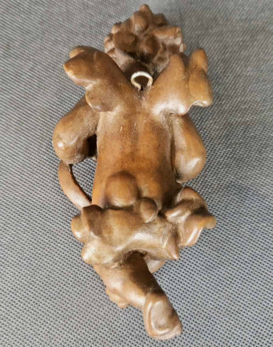 Kupidynek, aniołek, duża pełnoplastyczna postać amora wyrzeźbiona w drewnie, wykończona bejcą politurą i woskiem. Przedmioty ręcznie wyrzeźbiony w drewnie, odzwierciedlający liczne szczegóły. Pochodzący z Tyrolu niemieckiego lub włoskiego. Wykonany w latach 60 - 70 XX wieku. Imponujący cherubinek do kolekcji.