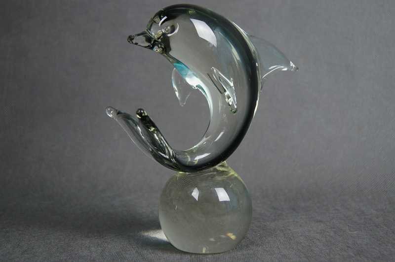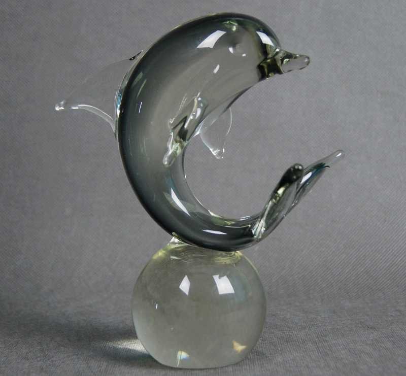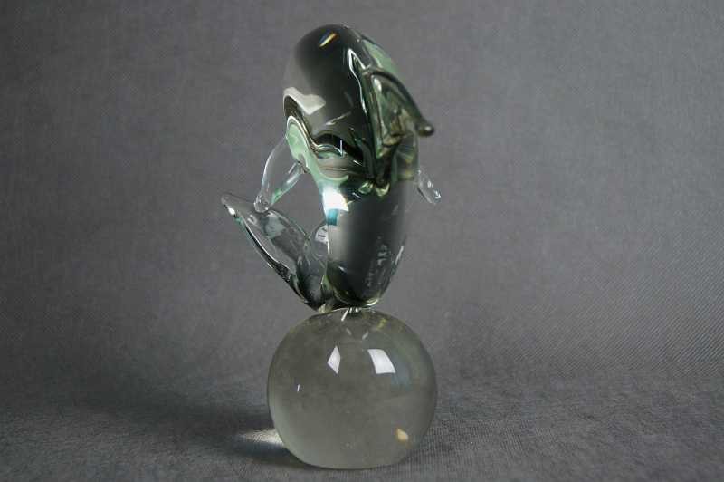 Delfin na kuli szklana artystyczna figura wersja 2