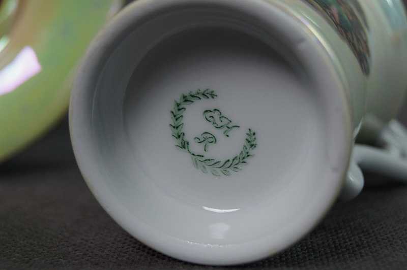 WYMIARY: spodek średnica 13 cm, filiżanka: wysokość 10 cm, średnica 7,3 cm.