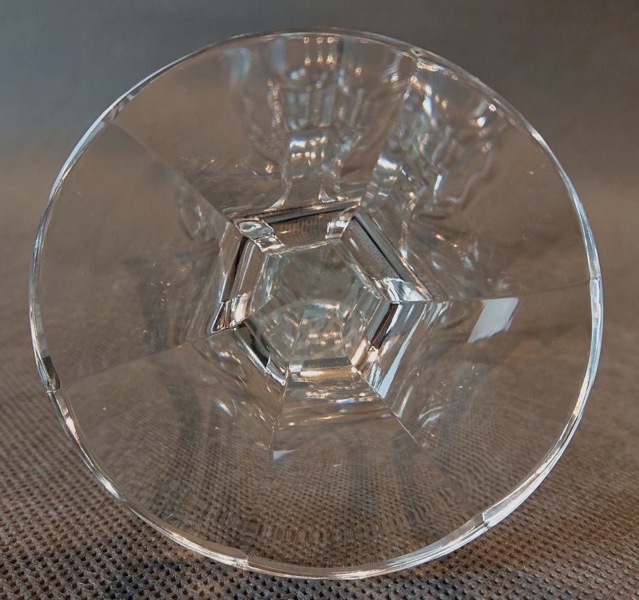 Duży oryginalny, finezyjny kielich do wina. Puchar pochodzi z jednej z najbardziej prestiżowych wytwórni szkła artystycznego na świecie. Wykonany z bezbarwnego szkła kryształowego. Czara, noga i stopa bezbarwna o geometrycznym przekroju szlifowana. Wykonany i szlifowany ręcznie o cudownej rzadko spotykanej formie i mistrzowskich szlifach. Eksponat sygnowany na stopie trawioną pieczątką Moser. Idealny przedmiot dla kolekcjonera.STAN ZACHOWANIA: bardzo dobry - bez jakichkolwiek pęknięć i wyszczerbień.