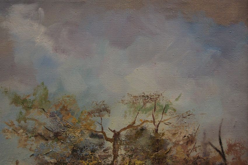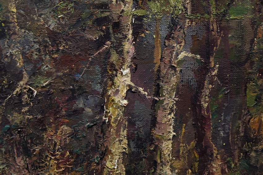 Oryginalne malarstwo szpachlowe w najlepszym wydaniu. Obraz olejny, malowany na płótnie naciągniętym na krosno. Struktura farby nakładana szpachlą bardzo wyraźnie wyczuwalna pod palcami. Bardzo wysokiej klasy, autentyczna praca, która doskonale ukazuje grę światłem na tle krajobrazu. Obraz godny polecenia jest niezwykle dekoracyjny i niesztampowy dla twórczości artysty.