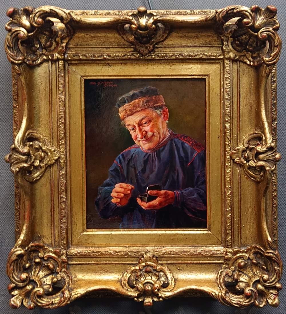 Prezentujemy wybitne studium psychologiczne autorstwa Otto Kirchnera – dzieło stanowiące reprezentatywny przykład malarstwa rodzajowego w jego najbardziej dojrzałym wydaniu. Portret, datowany na lata 40.–50. XX wieku, utrzymany jest w mistrzowskiej konwencji realistycznej. Autor z niezwykłą precyzją połączył tu warstwę narracyjną z głębokim wglądem w naturę ludzką, co czyni ten obraz nie tylko dekoracją, ale przede wszystkim poruszającą historią zatrzymaną na płótnie.