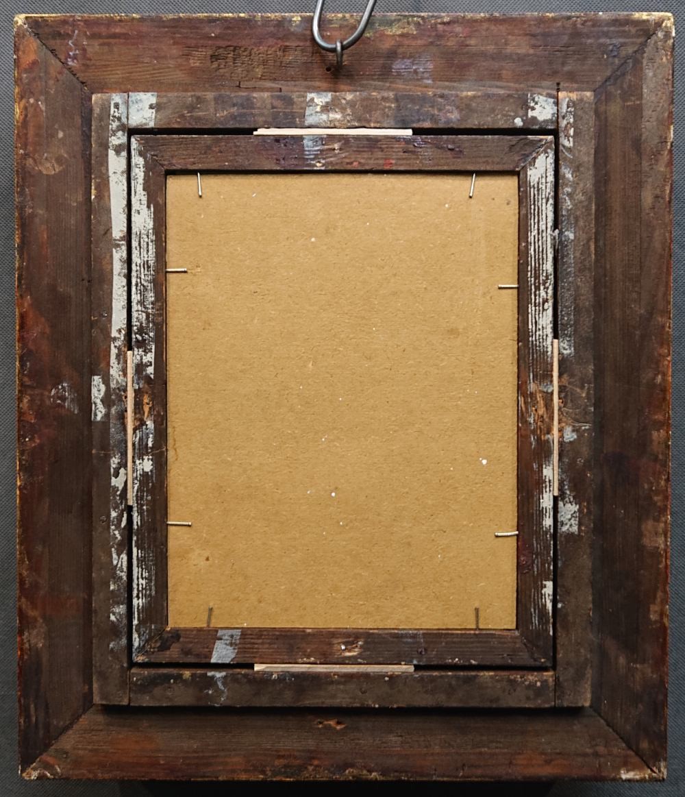 Rewers wskazuje na tradycyjny sposób mocowania sklejki w ramie, bez nowoczesnych przekładek dystansowych, co jest zgodne z praktyką warsztatową połowy XX wieku.
