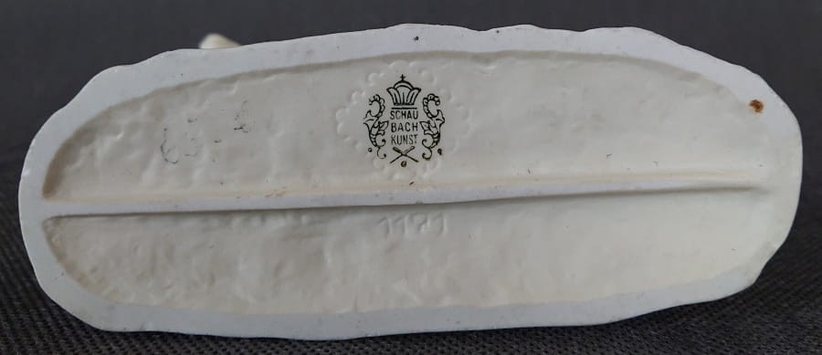 Na spodzie figurki znajduje się sygnatura „Schaubach‑Kunst”, świadcząca o pochodzeniu z renomowanej niemieckiej manufaktury, cenionej za wysoką jakość porcelany i kunszt rzeźbiarski. Całość emanuje dyskretnym urokiem, doskonale wpisując się w kolekcję subtelnych, zwierzęcych dekoracji wnętrz.