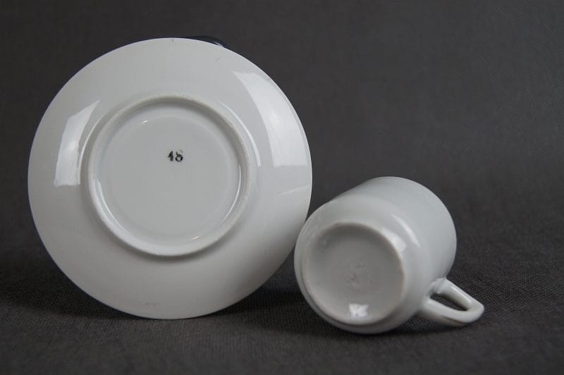 WYMIARY: spodek średnica 10,8 cm, filiżanka wysokość 5,5 cm, średnica górna 5 cm.