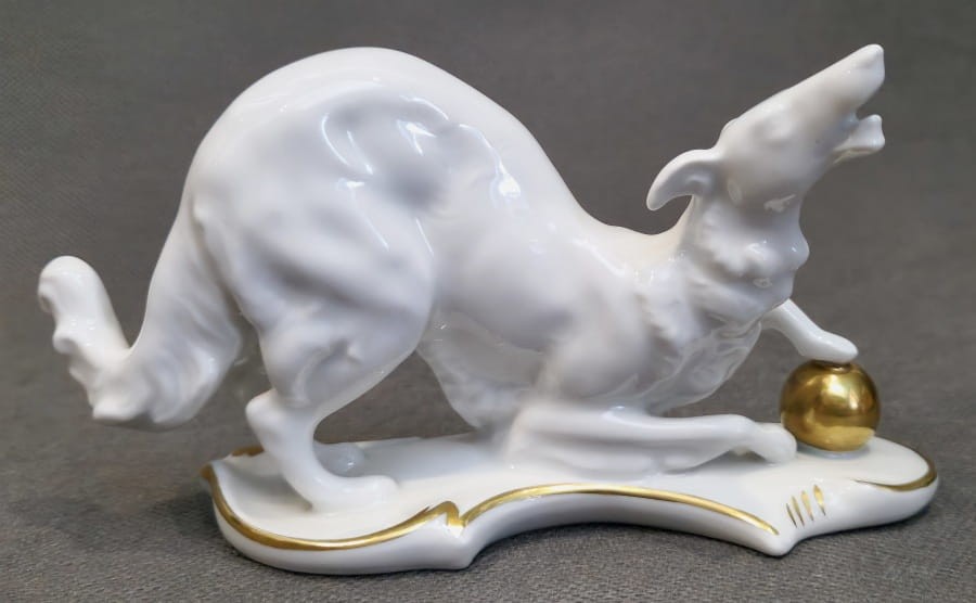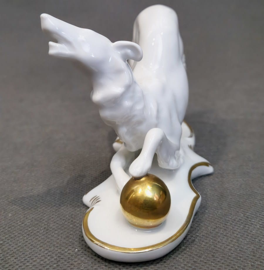 Hart ze złotą piłką ⭐ figurka psa ⭐ Porcelana Schaubach kunst