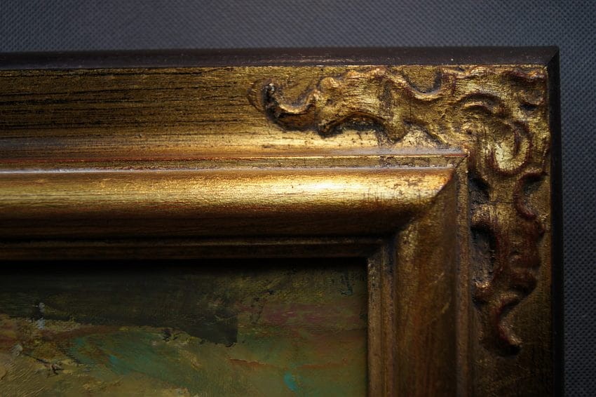 WYMIARY: całości z ramą 94 cm x 64 cm, płótno 50 cm x 80 cm.