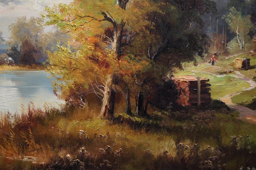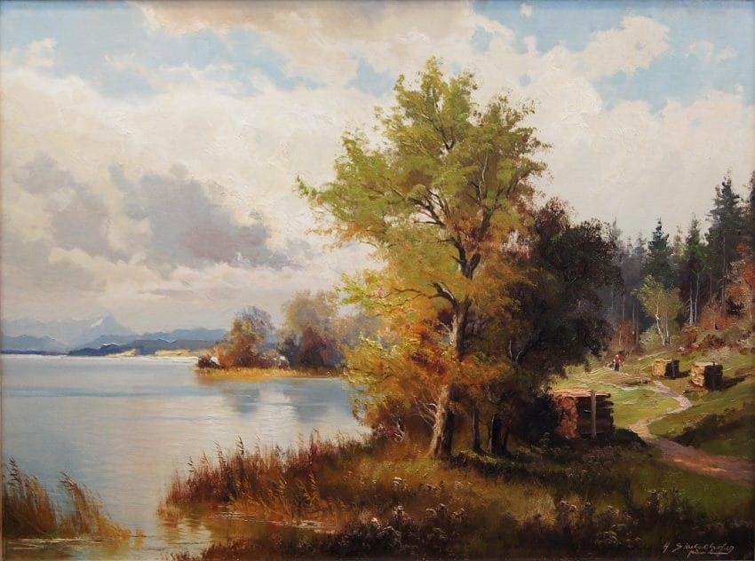 Sielskie klimaty to tematy cieszące się dużym powodzeniem zarówno wśród artystów jak i koneserów dobrego malarstwa. Przedstawiamy niesamowite malarstwo pejzażowe, niemieckiego aukcyjnego artysty. Jest to kolejna autentyczna perełka w ofercie w naszym sklepie internetowym. Obraz znanego monachijskiego twórcy niezwykłych, barwnych dzieł.