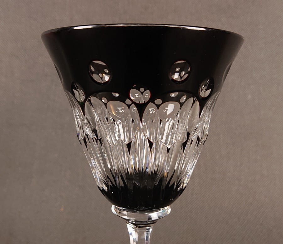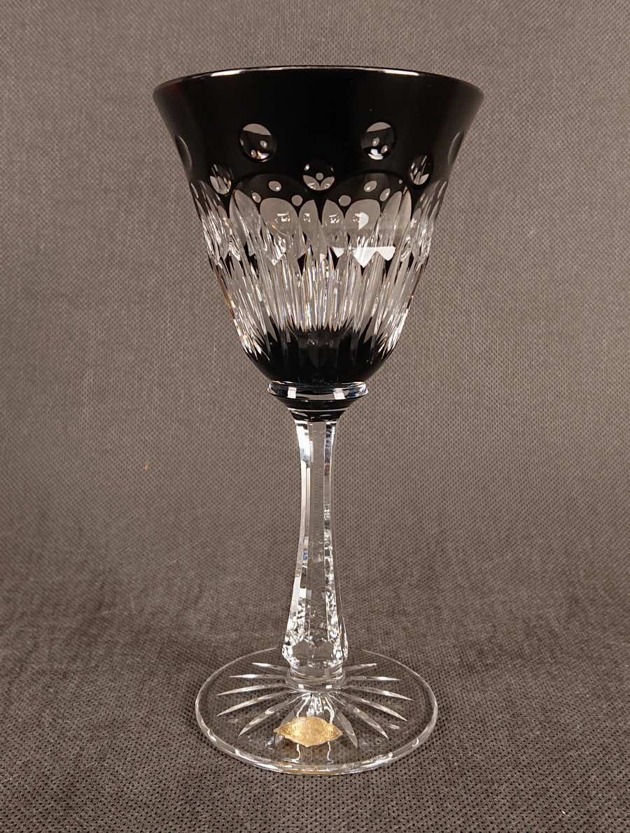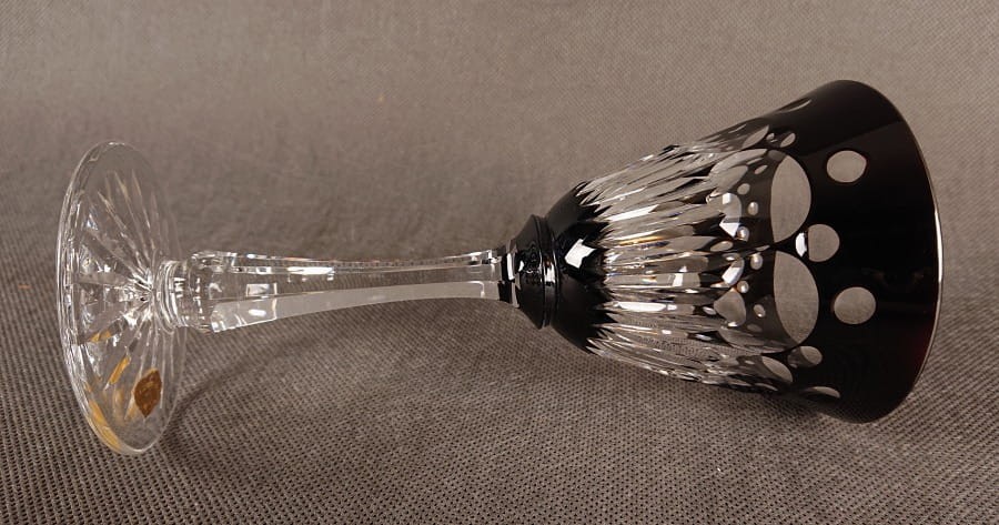 Kielich jest przykładem najwyższej jakości szkła kryształowego, charakterystycznego dla produkcji Josephinenhütte w okresie Art Deco. Jego najbardziej wyróżniającą cechą jest intensywna, transparentna rubinowa barwa czaszy, uzyskana prawdopodobnie techniką szkła nakładanego (overlay). Połączenie barwnej czaszy z bezbarwną, krystaliczną nogą i stopą tworzy efektowny kontrast i potęguje blask. Kielich ma klasyczną, lecz bogato zdobioną formę, świadczącą o luksusowym przeznaczeniu. Obecność oryginalnej firmowej nalepki na stopie kielicha jest niezwykle cennym elementem, potwierdzającym autentyczność i pochodzenie wyrobu.