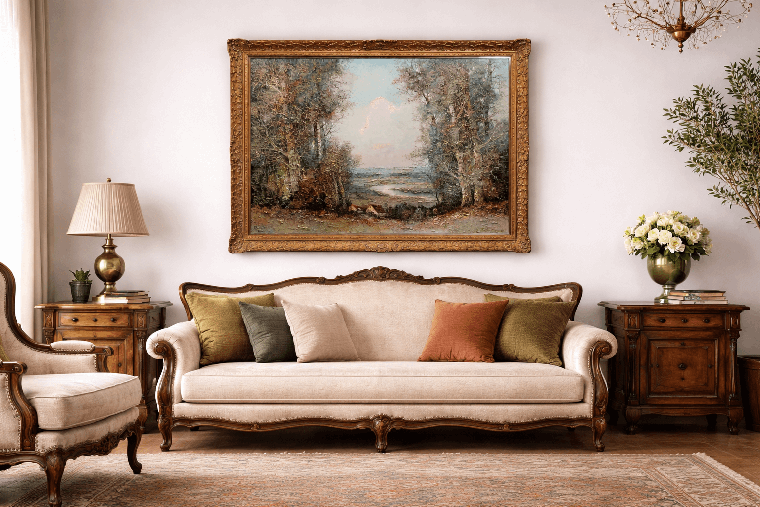To wyjątkowe dzieło stanowi doskonały przykład klasycznego malarstwa pejzażowego, które świetnie sprawdzi się jako elegancka dekoracja wnętrza – szczególnie jako obraz do salonu, gabinetu lub przestrzeni inspirowanej naturą i tradycją.