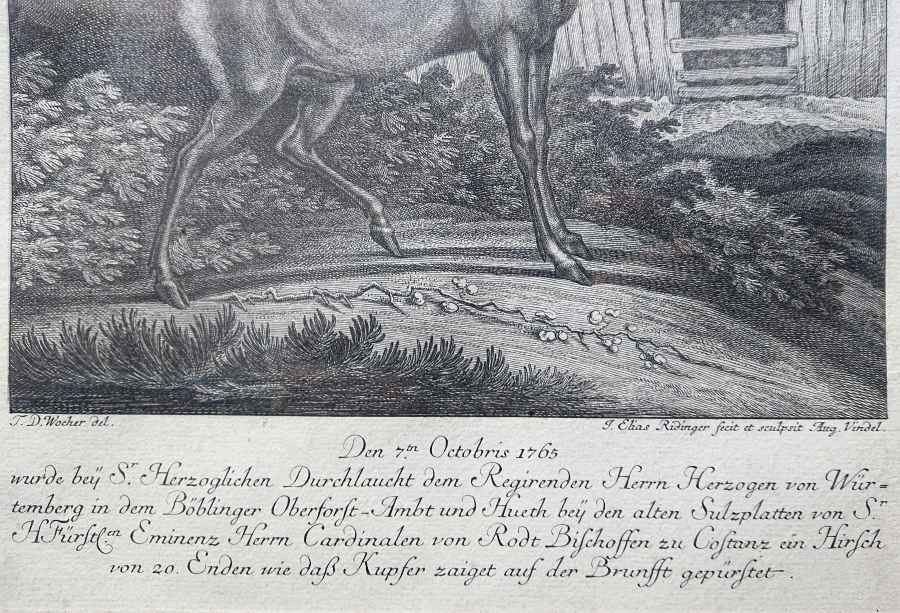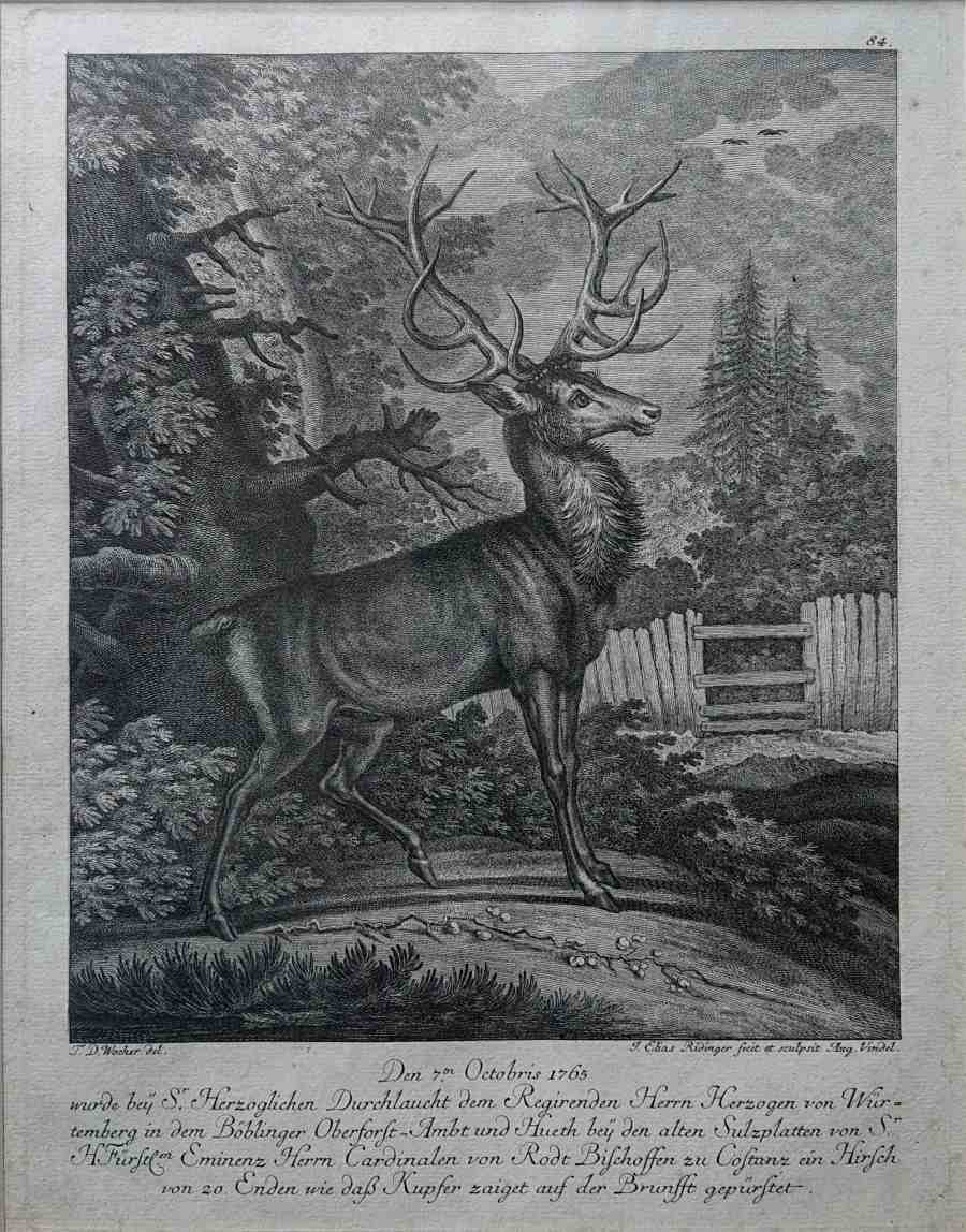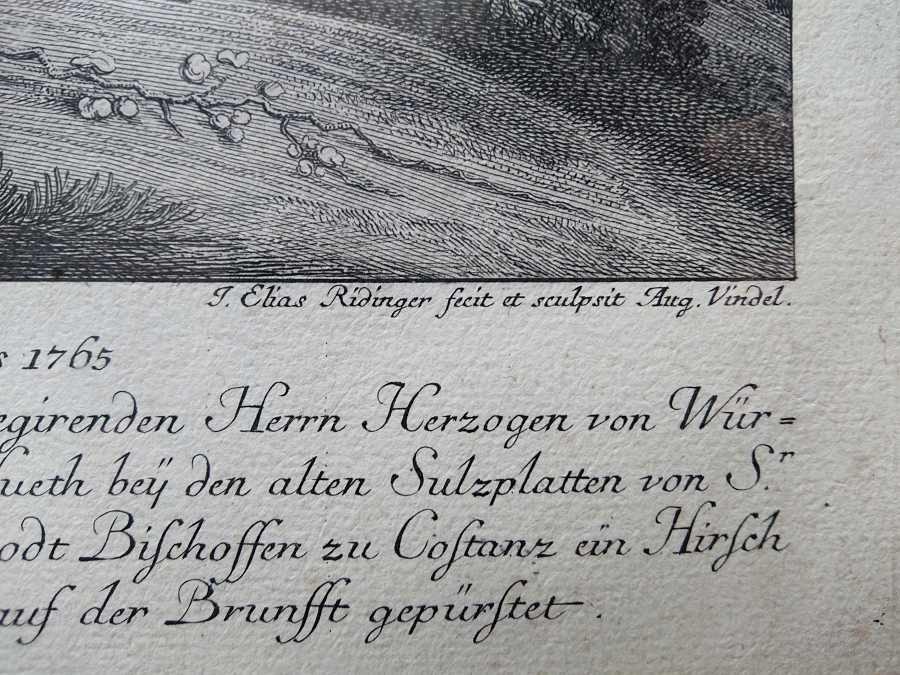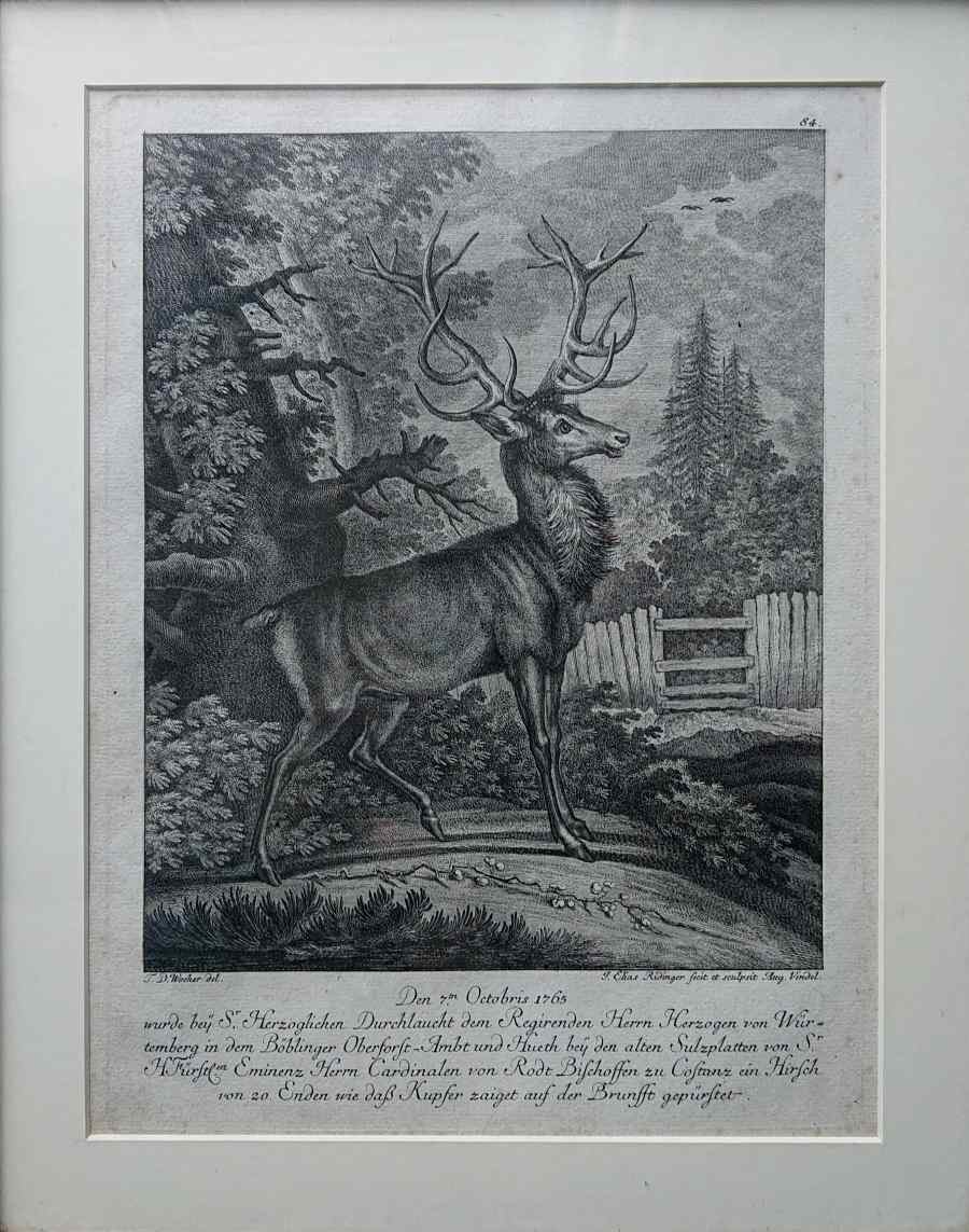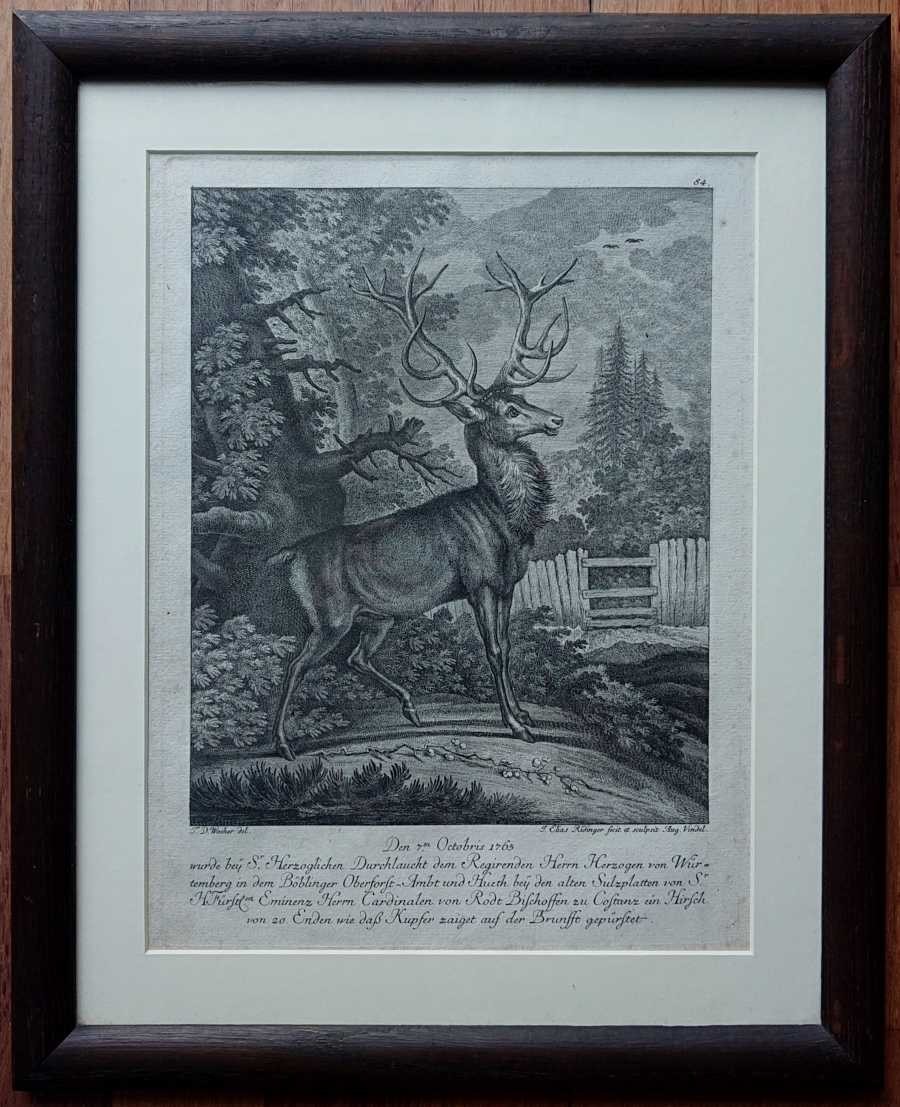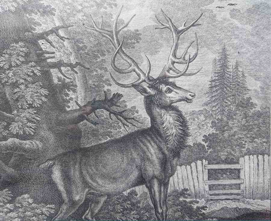 Jeleń szlachetny ⭐ miedzioryt J. Elias Ridinger - oryginał 1765 r