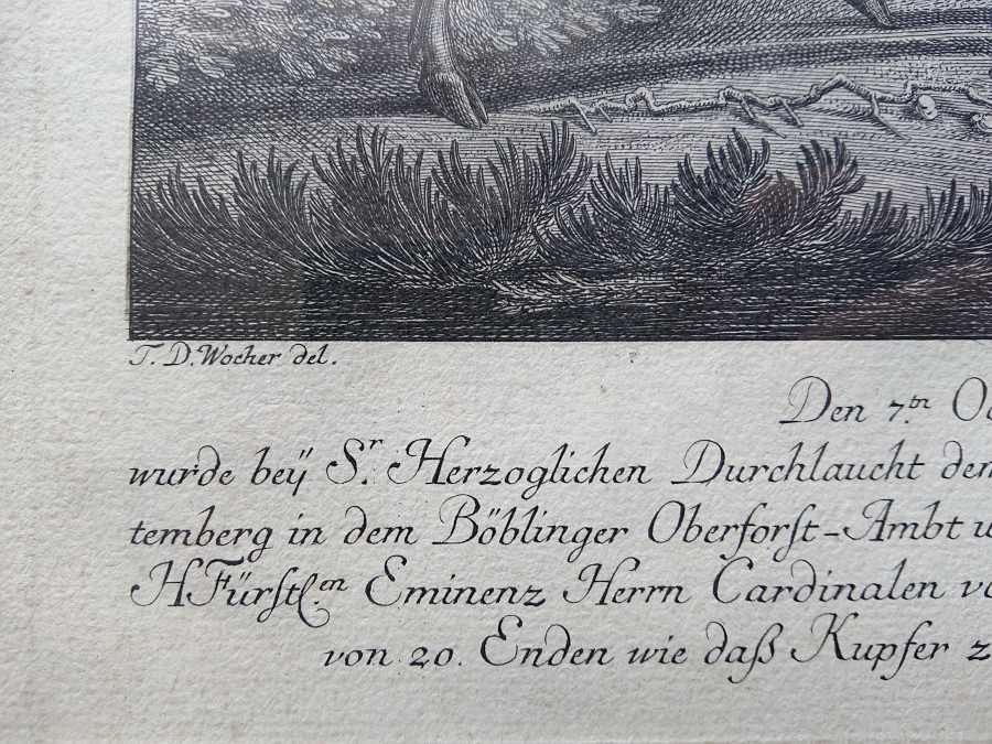 O ARTYŚCIE: Johann Elias Ridinger – niemiecki grafik, rysownik i malarz urodzony 16 lutego 1698 roku w Ulm - zmarł 10 kwietnia 1767 roku w Augsburgu. Znany głównie z wielu stworzonych serii miedziorytów, przedstawiających obrazy z życia codziennego zwierząt. Oraz licznych sceny łowieckich i jeździeckich. Łącznie J. E. Ridinger stworzył ok. 1600 prac, które cieszyły się wielkim uznaniem.