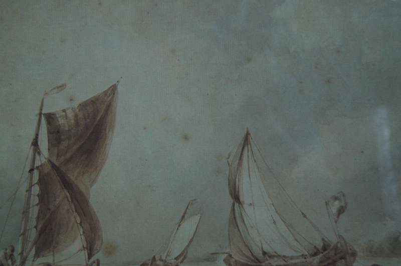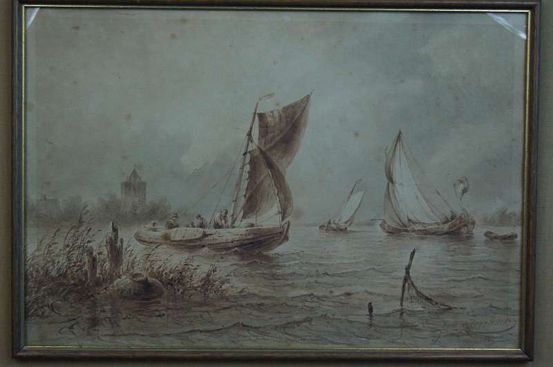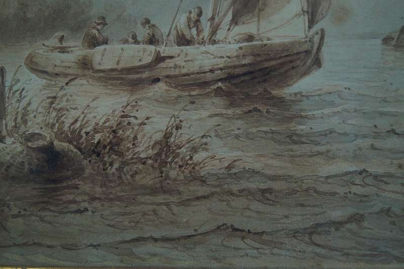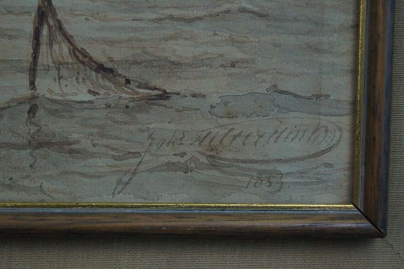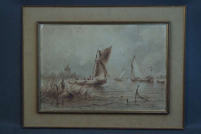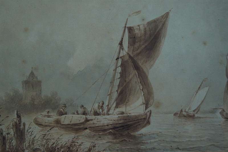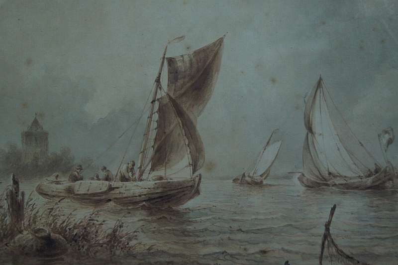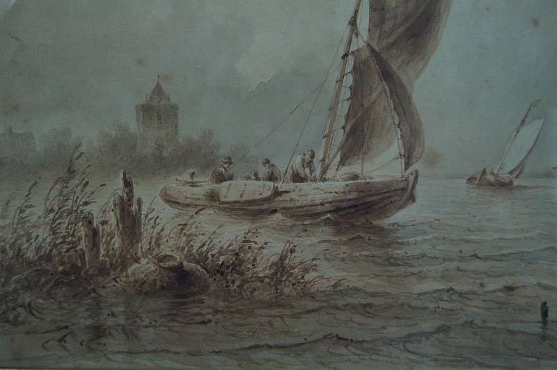 Johannes Hilverdink rybacy w łodziach akwarela 1853 !!!