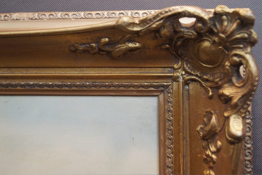Obraz malowany w technice pędzla, struktura nałożonej farby wyczuwalna pod palcami. Artysta na obrazie, przedstawia typowy dla swojej wybitnej twórczości temat. Sygnowany odręcznie przez autora w prawym dolnym narożniku: J. Burger. Obraz oprawiony jest w przepiękną, przestrzenną, oryginalną bogatą ramę w kolorze złotym.