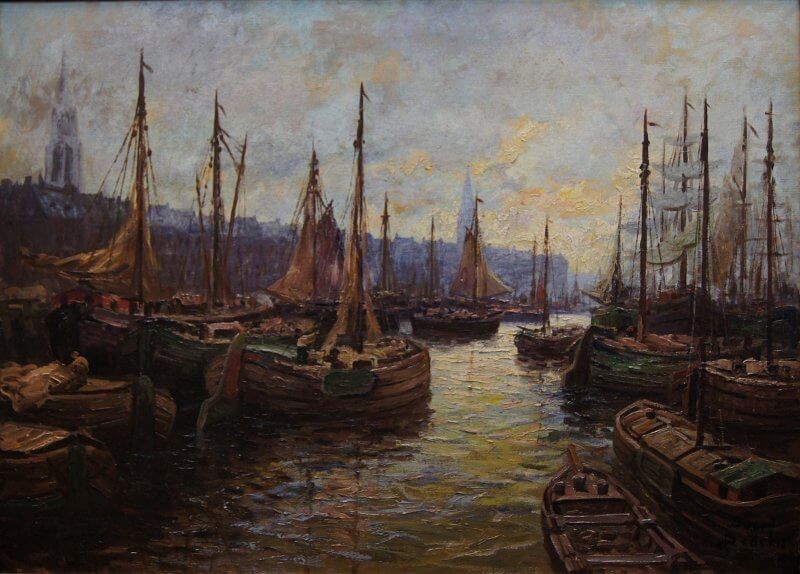 Josef Dederichs Port olbrzymi stary obraz olejny