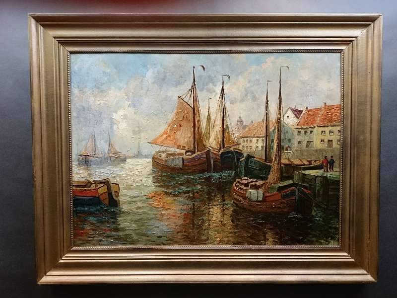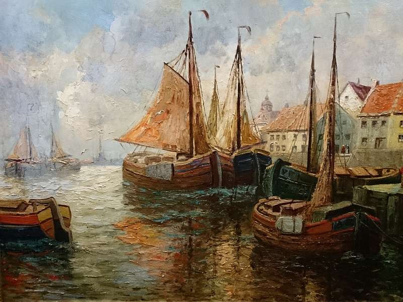 Josef Dederichs - W Porcie - Mega duży obraz Polecam !!!