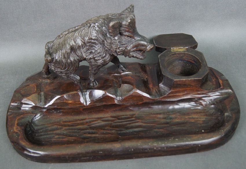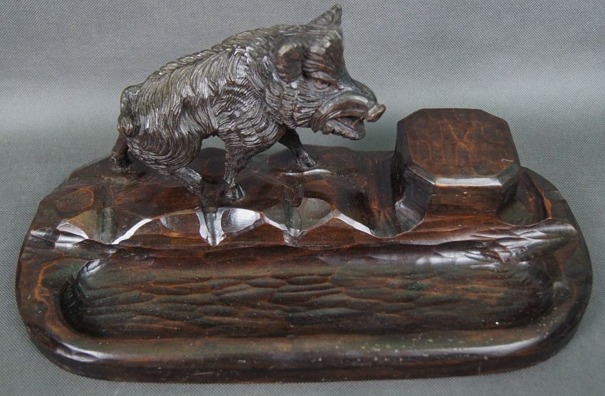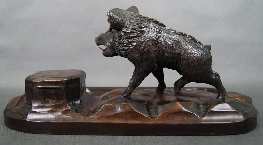 Kałamarz z dzikiem stara przedwojenna rzeźba