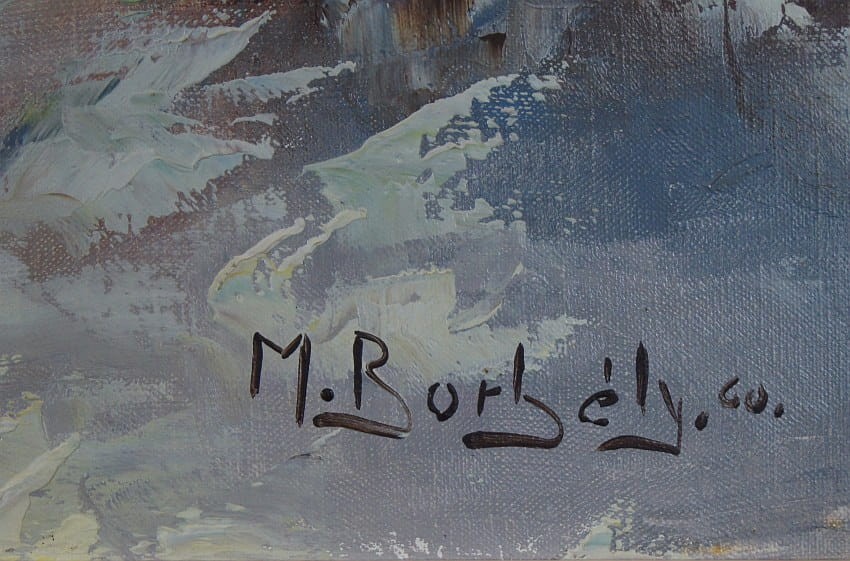 Obraz malowany w technice pędzla. Struktura nałożonej farby wyczuwalna pod palcami. Obraz sygnowany odręcznie przez artystę w prawym dolnym narożniku: M. Borbely. 60. Płótno oprawione jest w przestrzenną ramę z okresu powstania obrazu. Dzieło polecamy koneserom cennego i dobrego malarstwa. Obraz idealnie pasuje do wystroju nowoczesnych jak i stylowych wnętrz.