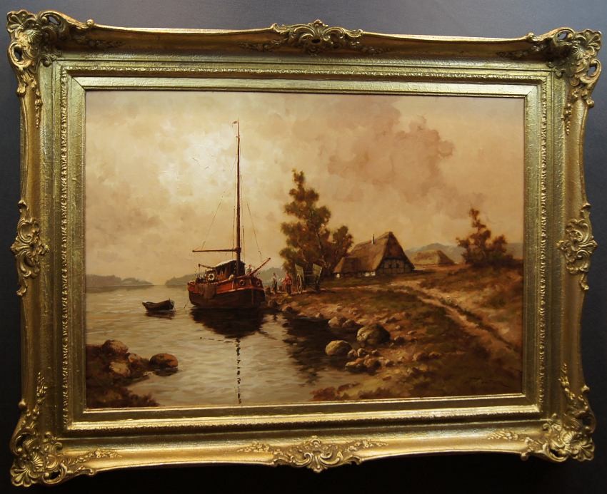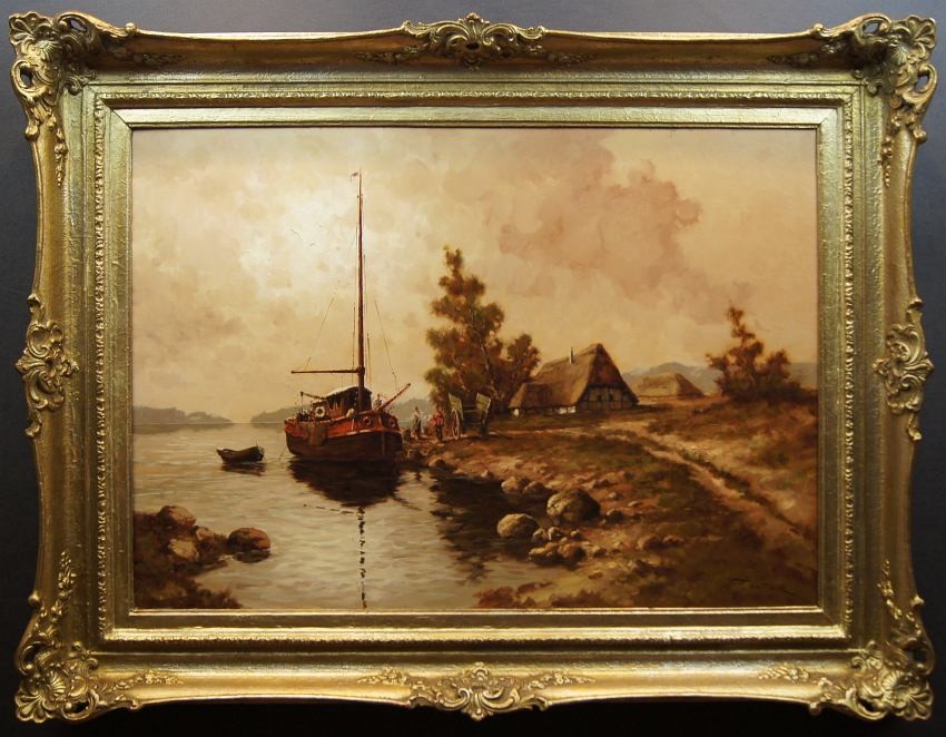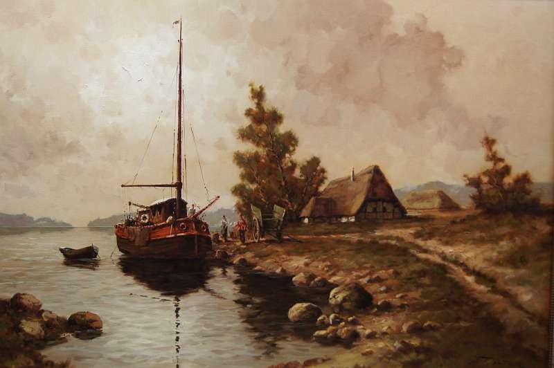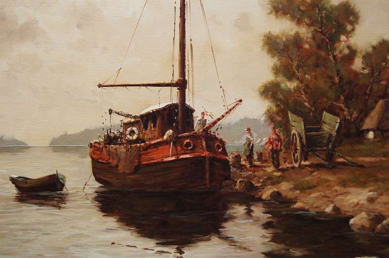 Kuter u brzegu Jurgen Winter Mega dekoracyjny obraz !!!