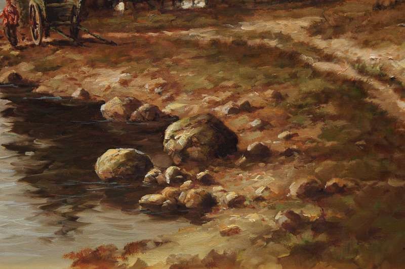 Autentyczny oprawiony w stylową drewnianą ramę obraz olejny na płótnie. Sygnowany: prawy dól: J.Winter. Obrazy artysty cieszą się dużym powodzeniem ze względu na perfekcyjne pociągnięcia pędzla i styl malarski oddający klimat 19 wiecznych obrazów.