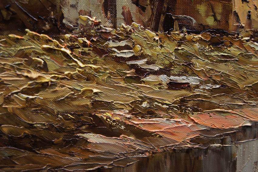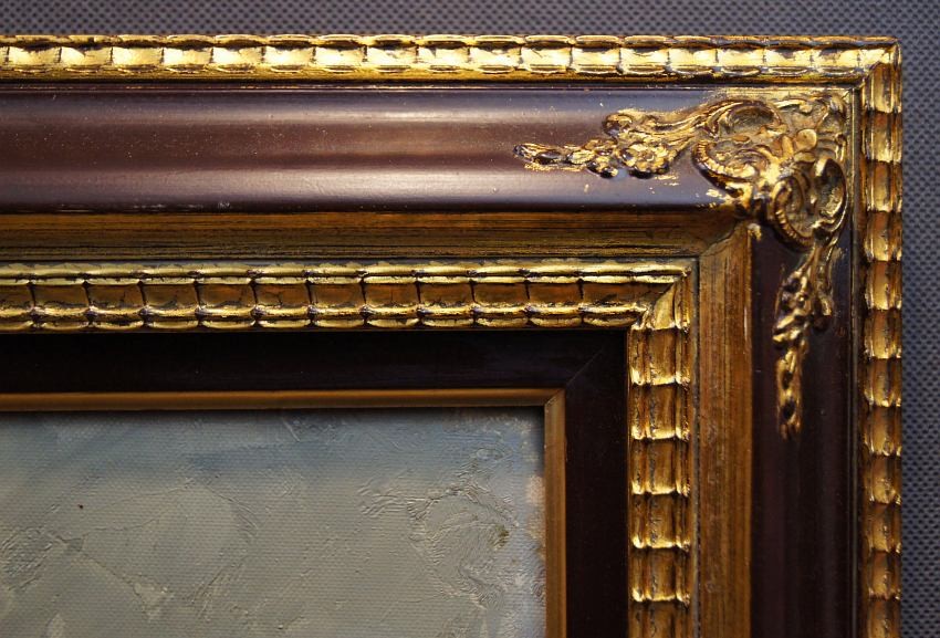 Obraz oprawiony w oryginalną przestrzenną ramę w kolorze brązu z akcentami złota. Dzieło polecamy osobom poszukującym dobrego malarstwa. Całość do powieszenia na ścianie w salonie lub innym pomieszczeniu.