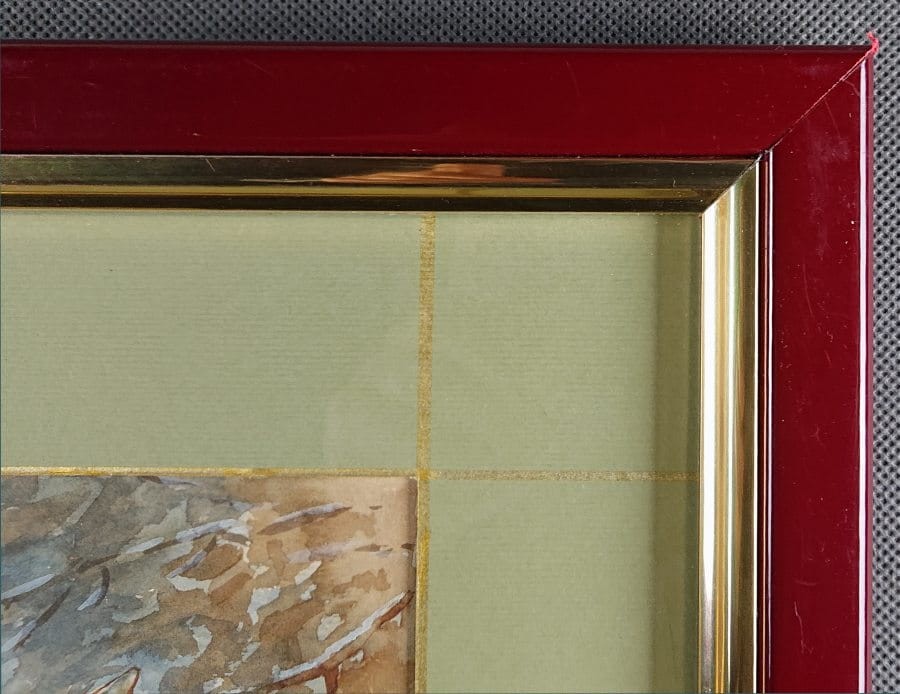 WYMIARY: Całości z ramą 34 cm x 41 cm, akwareli w świetle paspartu 18,5 cm x 25 cm.