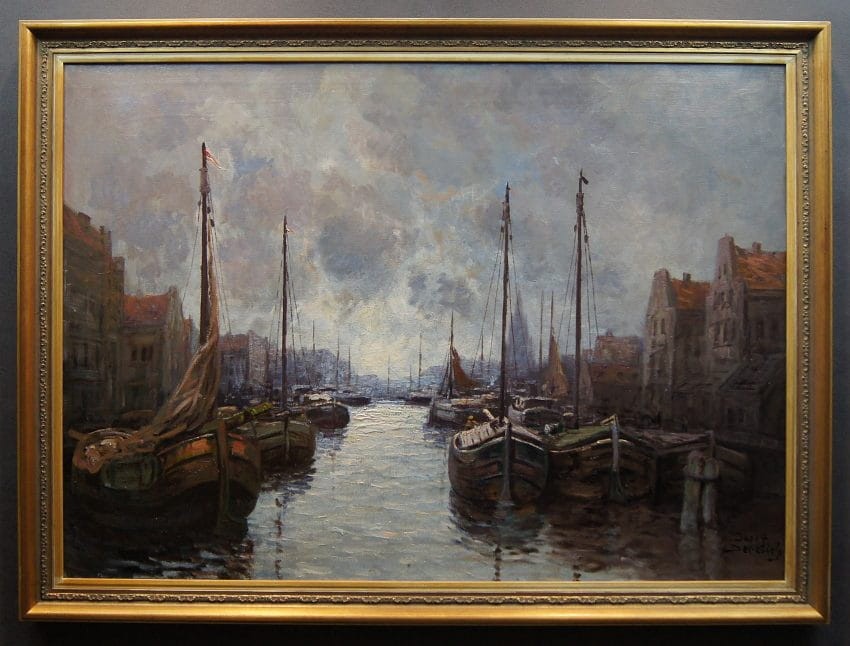 Łodzie w porcie ⭐ olbrzymi przedwojenny obraz olejny ⭐ Josef Dederichs