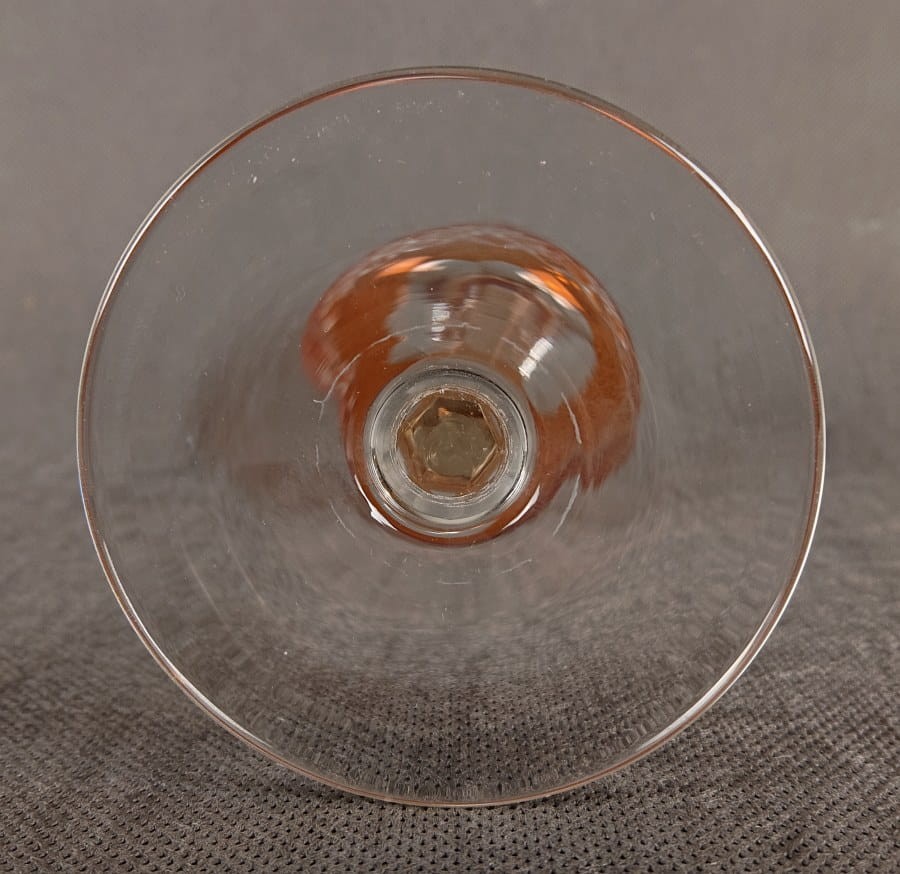 Ten wykwintny, przedwojenny kielich typu "remer" ze szkła kryształowego urzeka subtelną barwą i mistrzostwem detali.