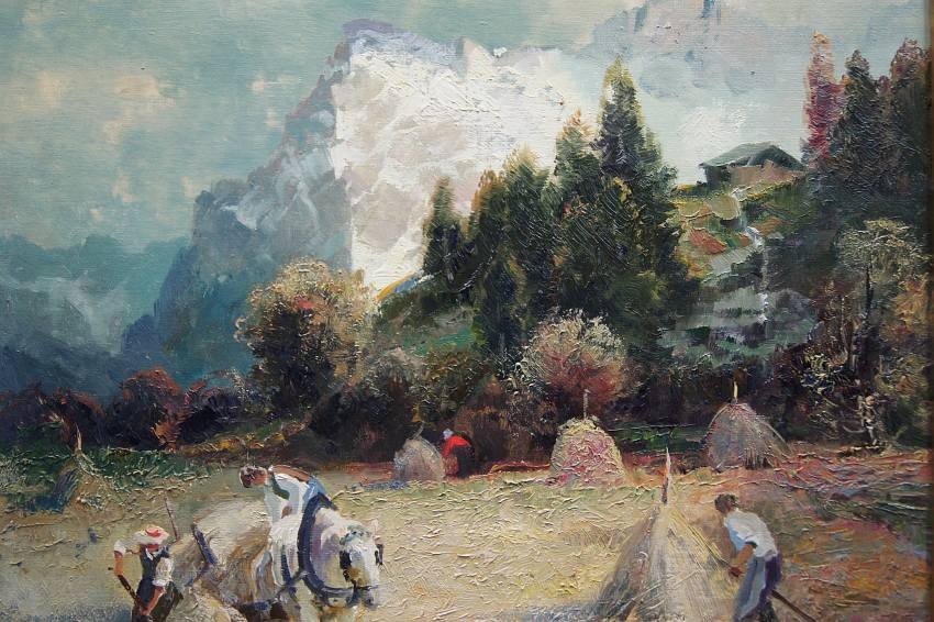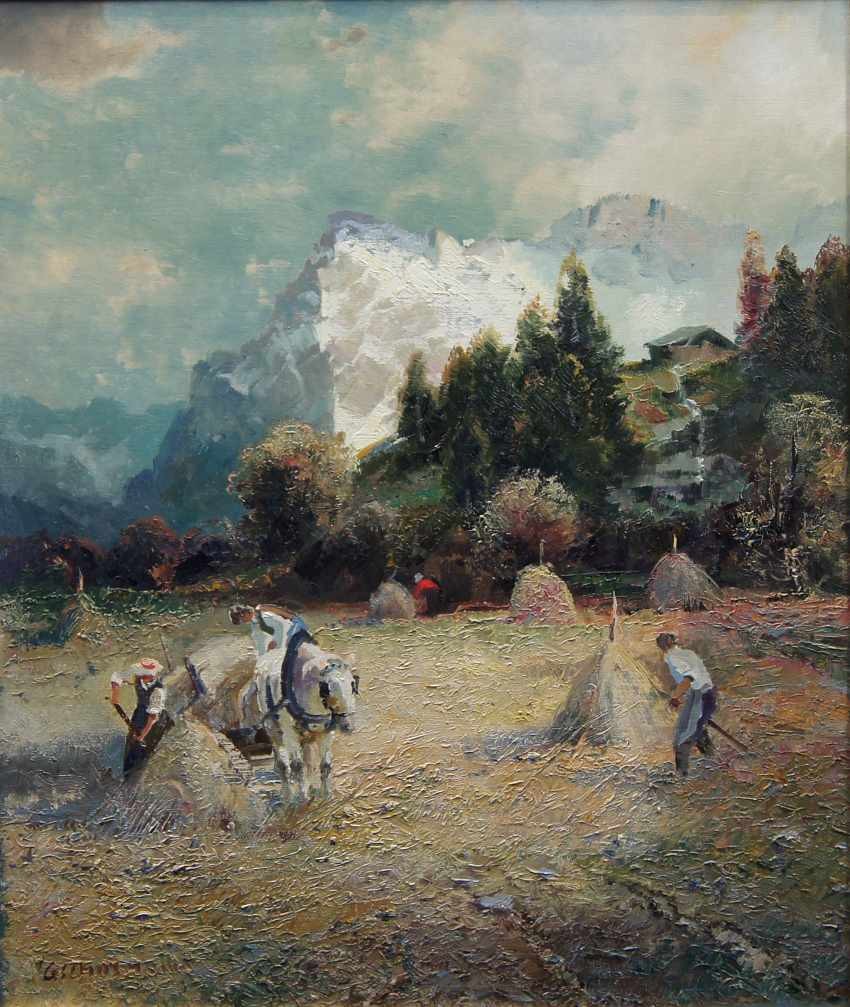 Ludwig Gschossmann I Żniwa z widokiem na Wetterhorn | wyjątkowy obraz