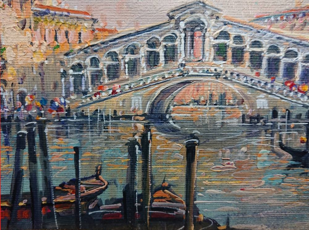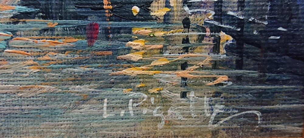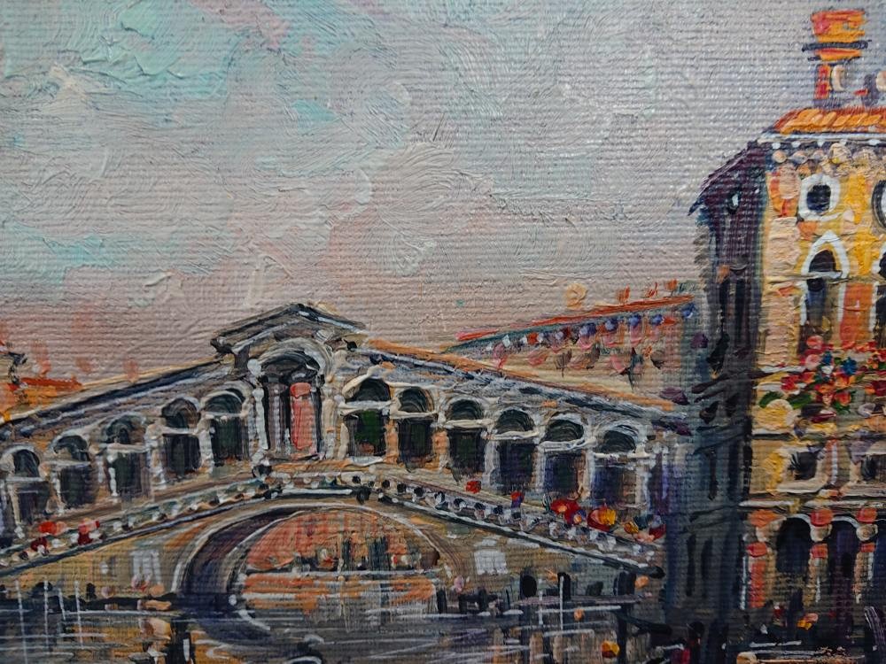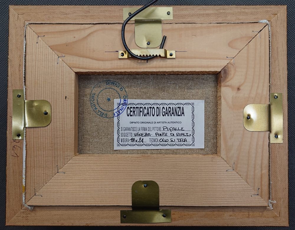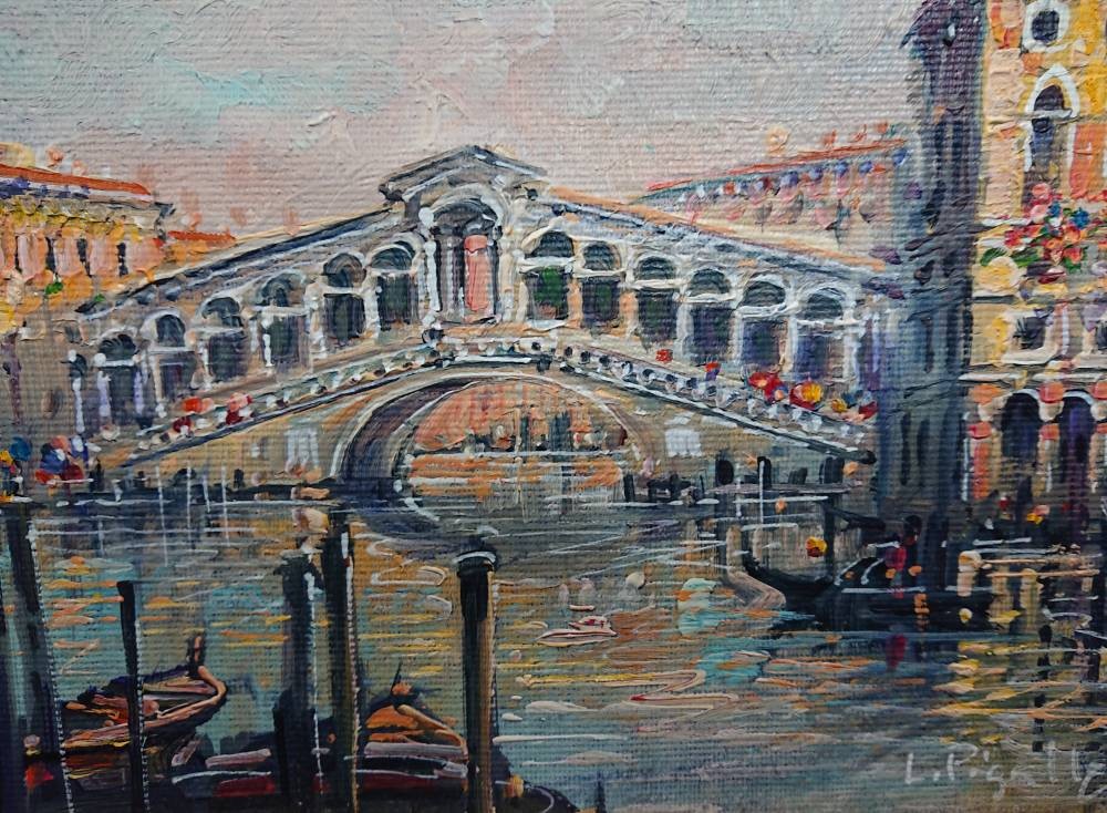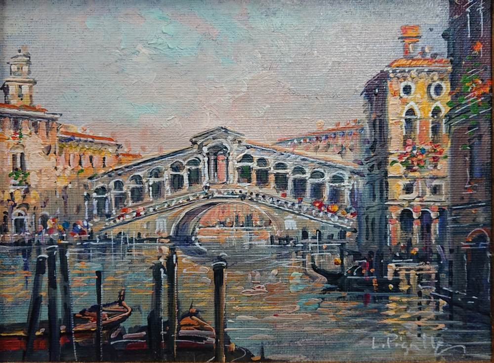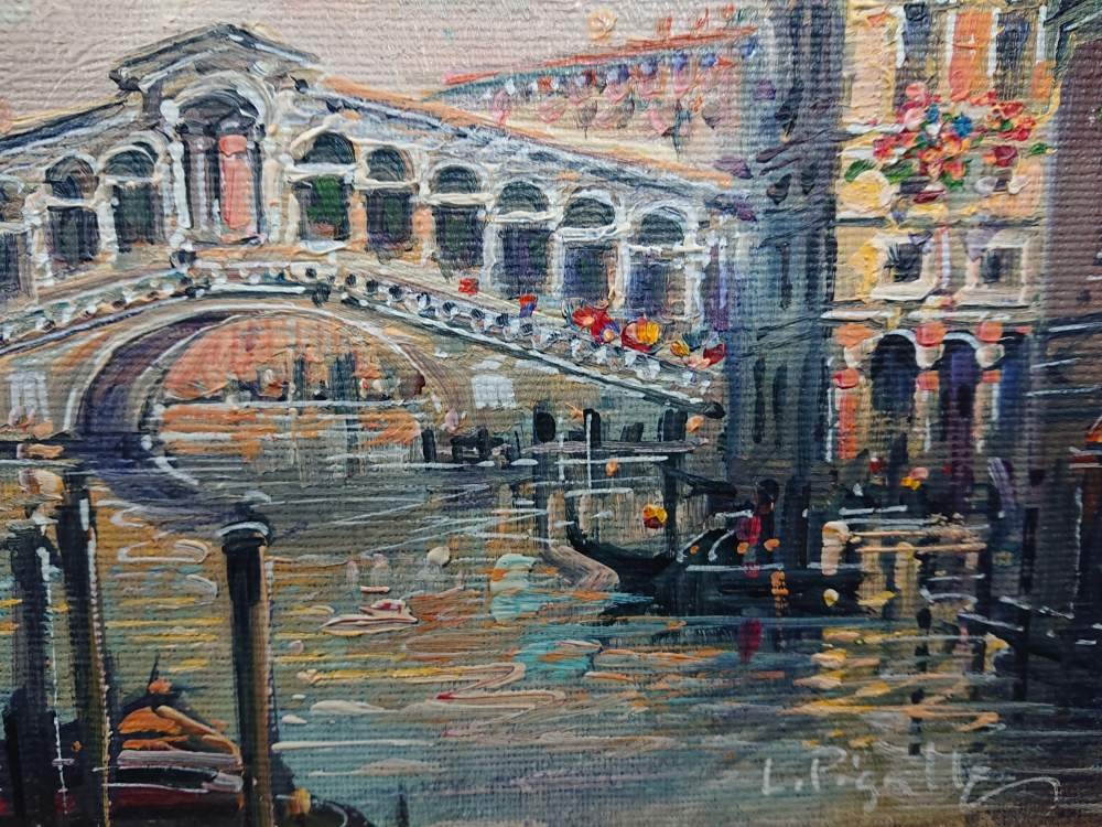 Luigi Pigalle "Venezia - Rialto" – Oryginalny Obraz Olejny z Certyfikatem w Złoconej Ramie