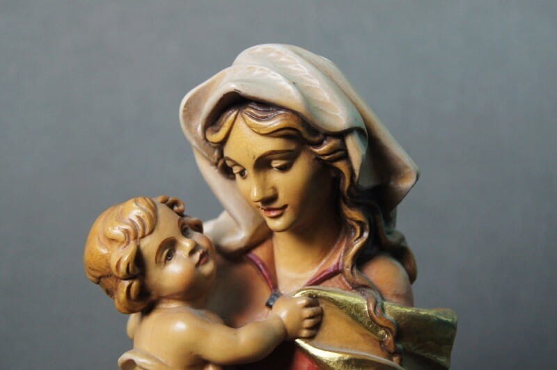 Madonna z dzieciątkiem duża rzeźba w drewnie w polichromii