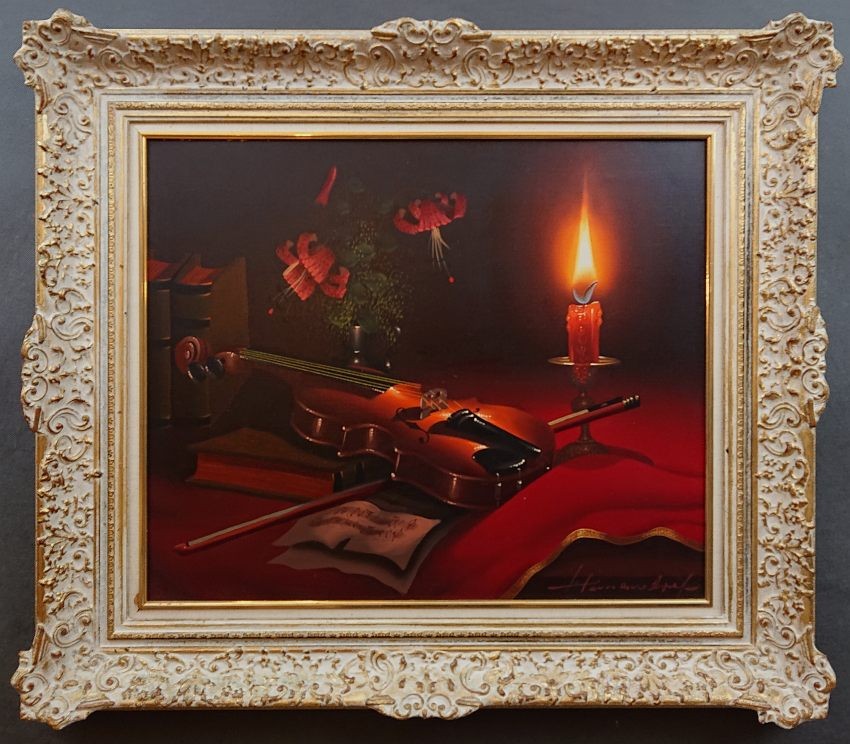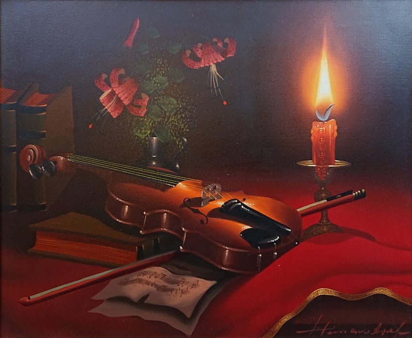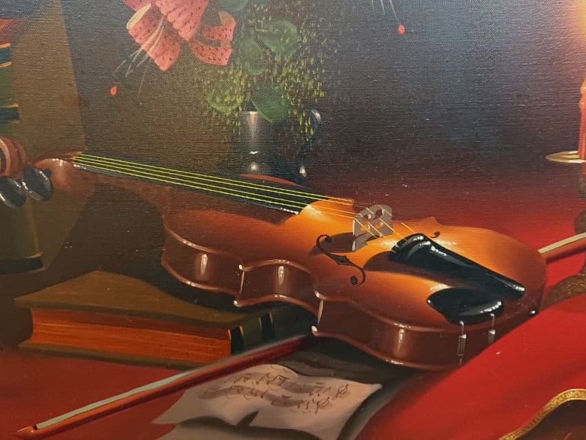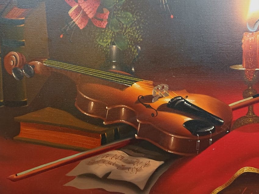 Martwa natura ze skrzypcami ⭐ dekoracyjne malarstwo do wystroju