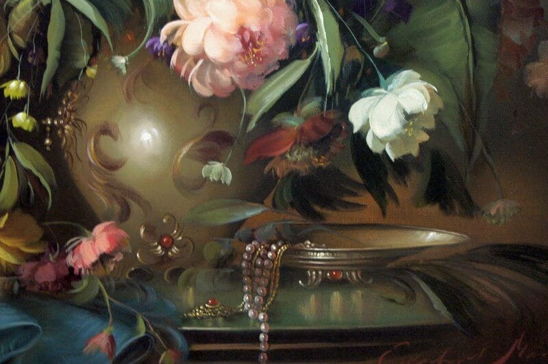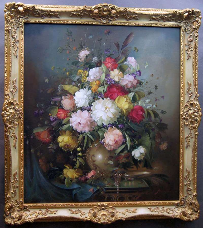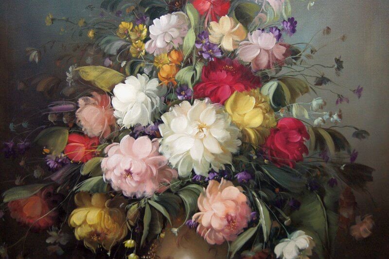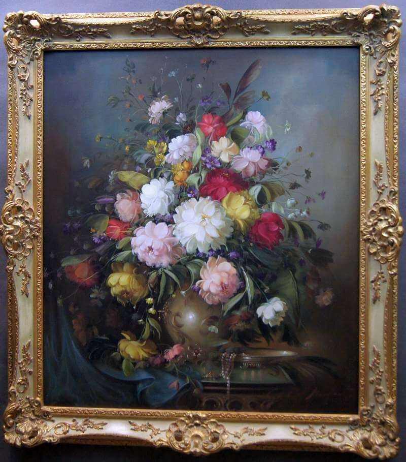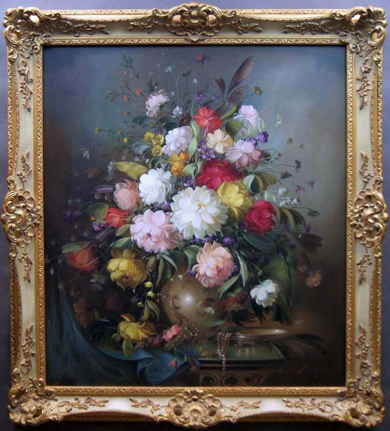 Merfort Gerhard obraz do salonu z bukietem ogrodowych kwiatów do salonu