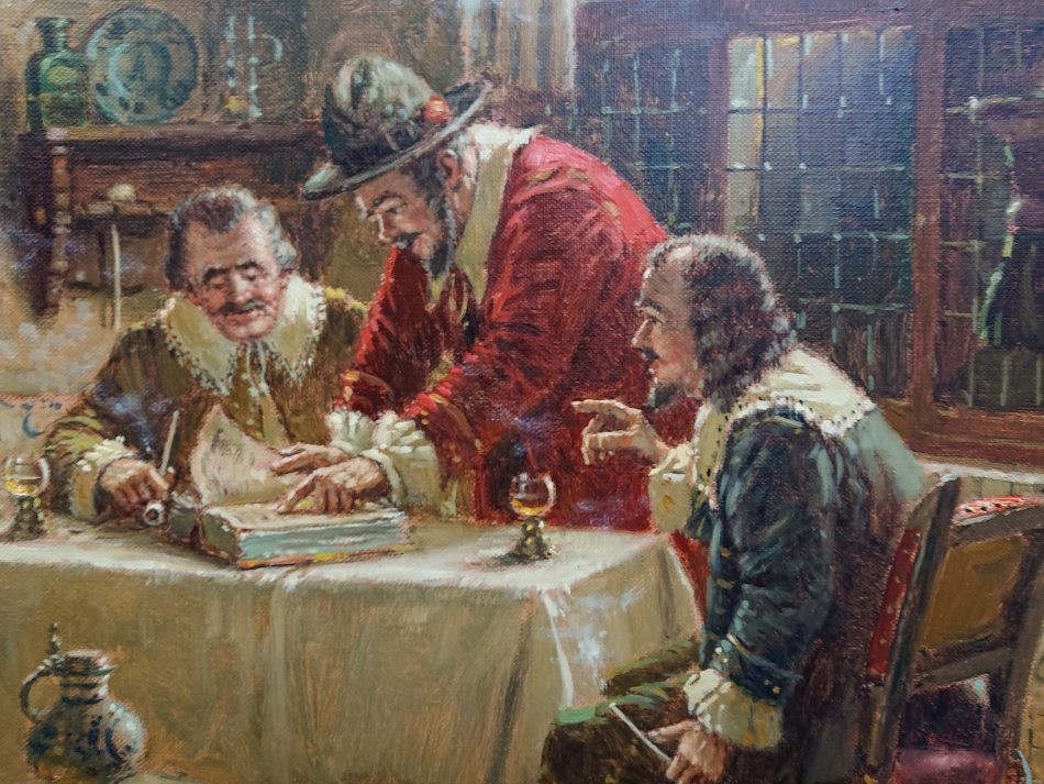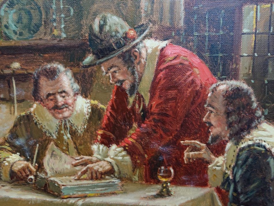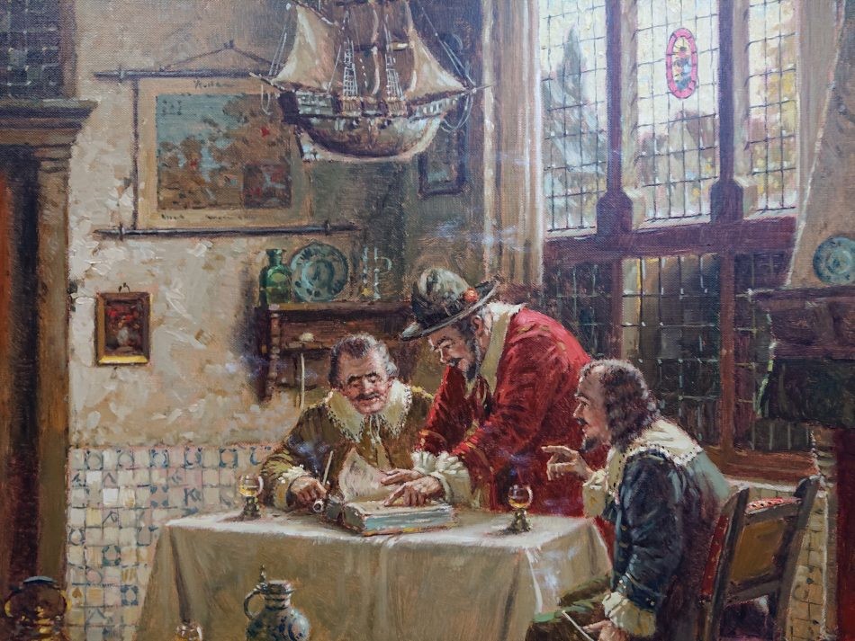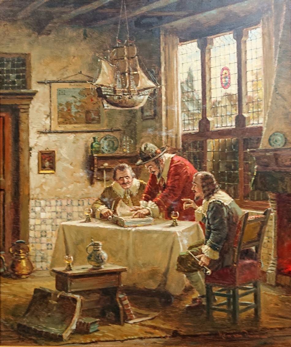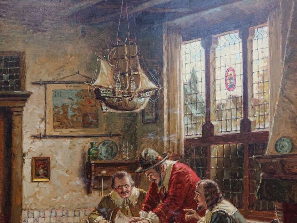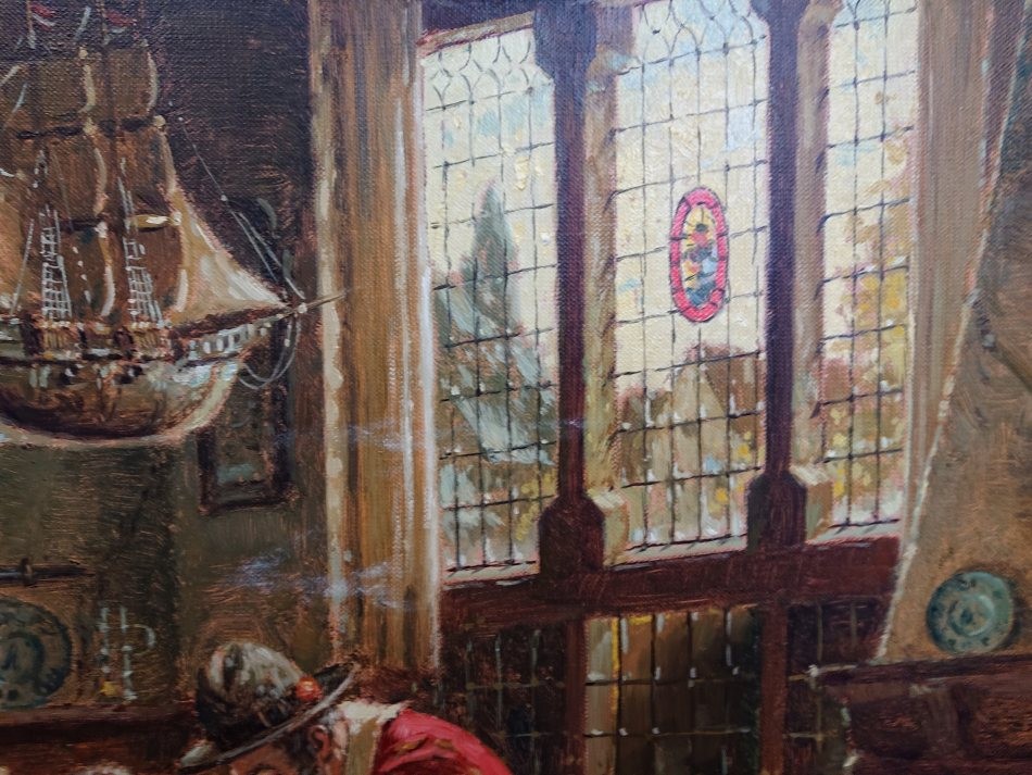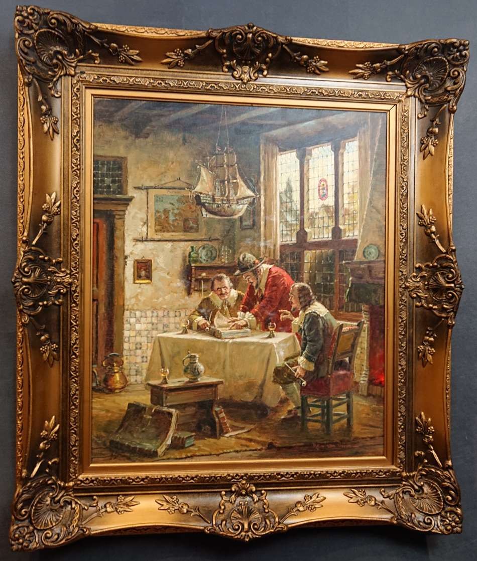 O ARTYŚCIE: Hein Van Doren - znany artysta malarz urodzony w Düsseldorfie w 1930 roku – o korzeniach holenderskich. Przez jakiś czas studiował pod kierunkiem düsseldorfskiego artysty malarza Alberta Henricha i pod jego wpływem malował początkowo głównie martwe natury i kwiaty. Późniejsze, samodzielne studia w muzeach spowodowały duże zainteresowanie się holenderskim malarstwem rodzajowym XVII i XVIII w., które stało się dlań trwałą inspiracją w dalszej twórczości. Malował historyzujące, kostiumowe sceny rodzajowe rozgrywające się w „holenderskich” wnętrzach, a jego narracyjne obrazy, oparte na czytelnej i często humorystycznie podawanej anegdocie, zyskiwały popularność. W początkowej fazie swojej twórczości prace sygnował pod pseudonimem W. Andreas. Spośród powtarzających się tytułów prac artysty wymienić można, m.in. W kantorze, Próba wina, Dyskusja przy stole, Nowe szlaki żeglugi.