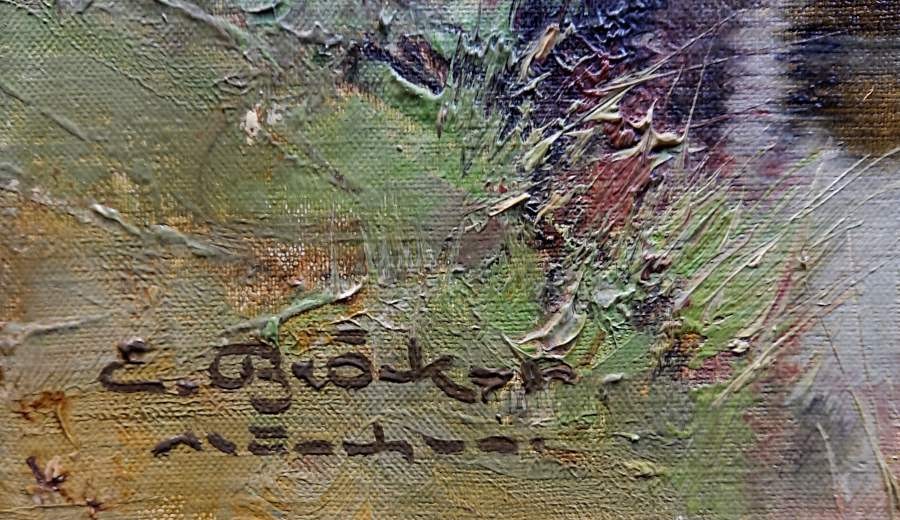 Płótno sygnowane odręcznie przez autora w lewym dolnym narożniku: E. Bröcker - Munchen. Oprawiony w oryginalną przedwojenną, bardzo ładną ramę w kolorze złota. Obraz o dużych walorach artystycznych i zdobniczych, będzie idealną ozdobą każdego wnętrza.