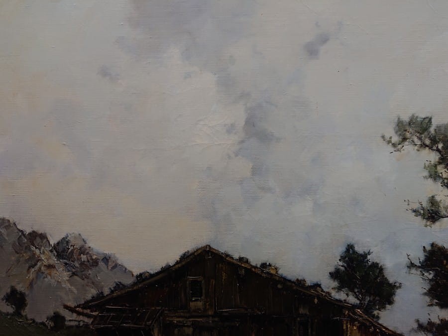 Ernst Bröcker doskonale uchwycił piękno natury oraz urok odizolowanego, górskiego życia. Obraz ten emanuje ciszą i harmonią, a jednocześnie przypomina o nieuchronnym wpływie czasu na ludzkie osady w tak dzikim, majestatycznym otoczeniu. Artysta zwraca uwagę na detale i tekstury tych elementów, aby oddać ich autentyczność. Artysta wykorzystuje techniki malarskie, takie jak pociągnięcia pędzla i gra świateł i cieni, aby oddać autentyczną atmosferę .