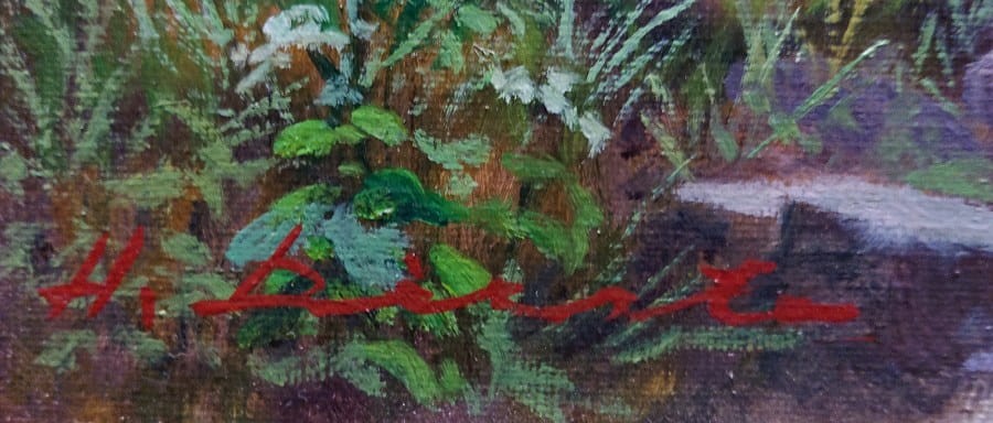 Malarz umieścił na tym obrazie swój autentyczny podpis w lewym dolnym narożniku " H. Dieste ".