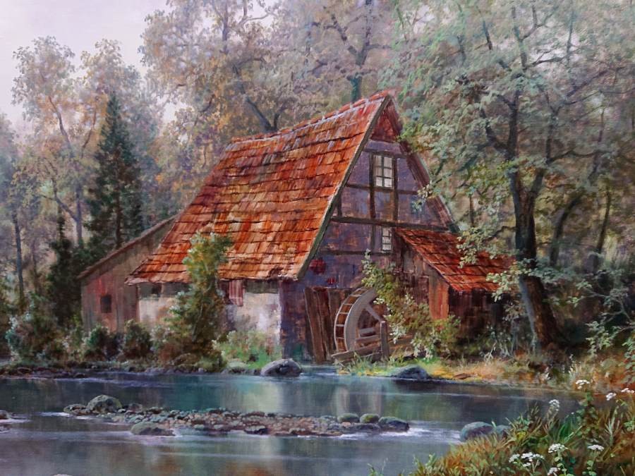 Młyn wodny w tajemniczym lesie ⭐ romantyczny obraz Hermann Dieste