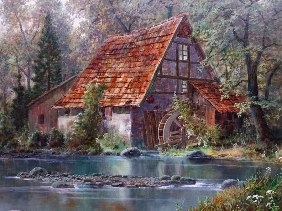Młyn wodny na obrazie