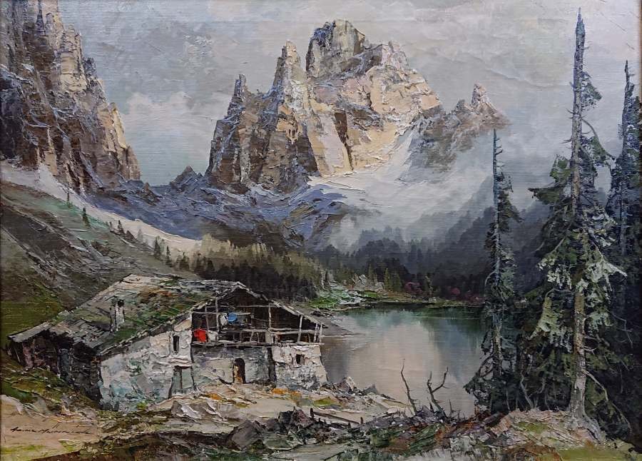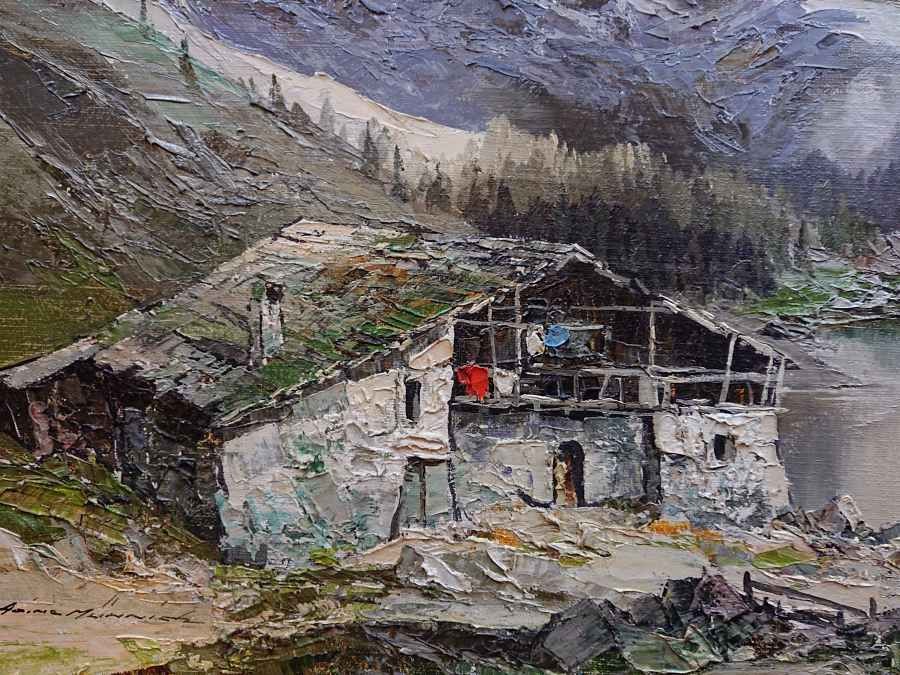 Pejzaże górskie w malarstwie od zawsze przyciągały uwagę swoją monumentalnością i naturalnym pięknem. W obrazie Heinz Munnich artysta ukazuje spokojny górski krajobraz z chatą, tworząc kompozycję, która łączy dzikość natury z elementem ludzkiej obecności.