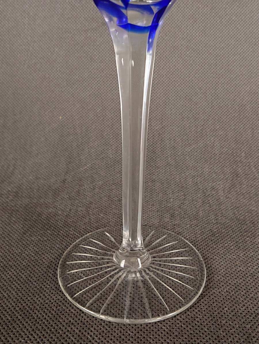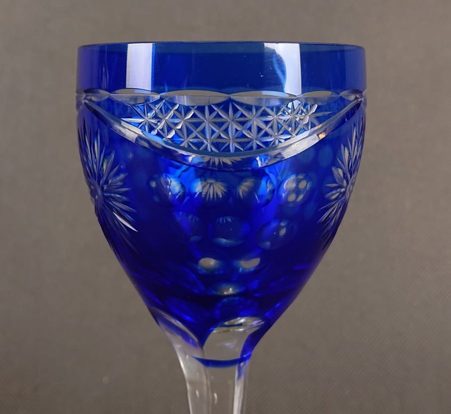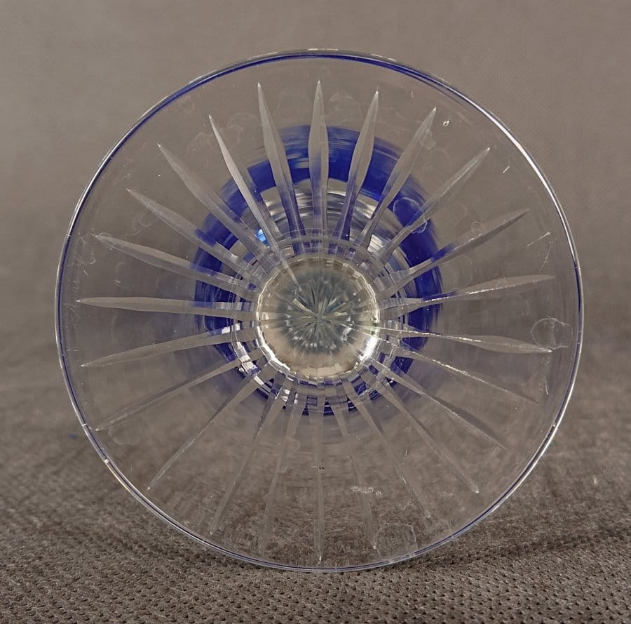Jego czara ma pękaty, klasyczny kształt i olśniewa głębokim, nasyconym odcieniem niebieskiego. Powierzchnia czaszy jest bogato i precyzyjnie szlifowana, prezentując skomplikowany wzór "diamond cut" (romboidalna siatka), który pokrywa większość jej powierzchni. W ten misterny wzór wkomponowane są również lśniące szlify w kształcie gwiazd lub rozet, które potęgują grę światła i dodają blasku.